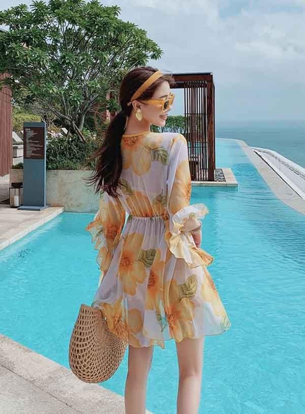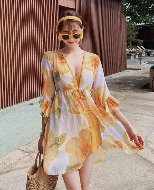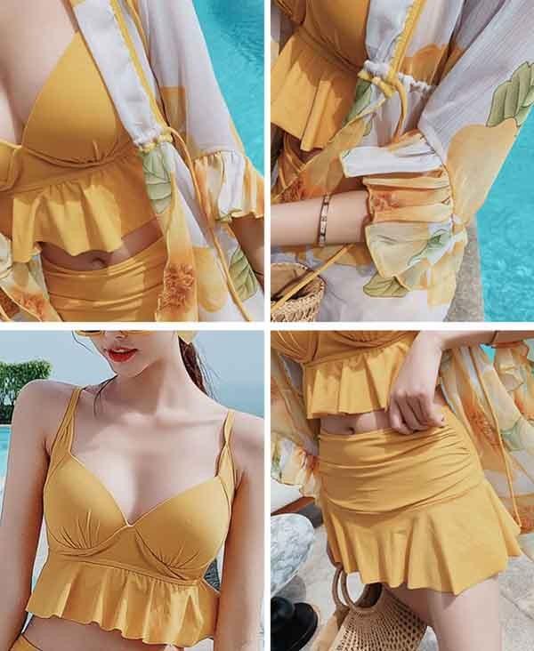 水着 レディース タンキニ 大きいサイズ イエロー 半袖 見せパン かわいい 体型カバー ぽっちゃり 女性 5L 海水浴 温泉 韓国風 ds219zezec9