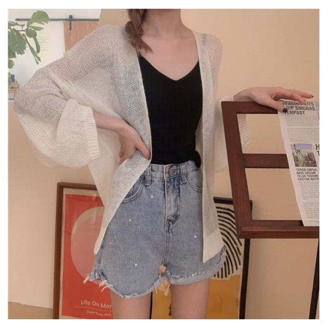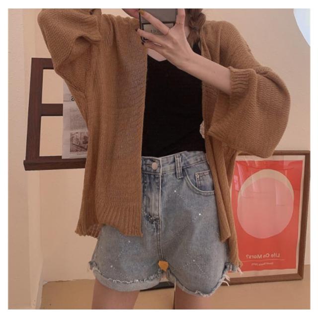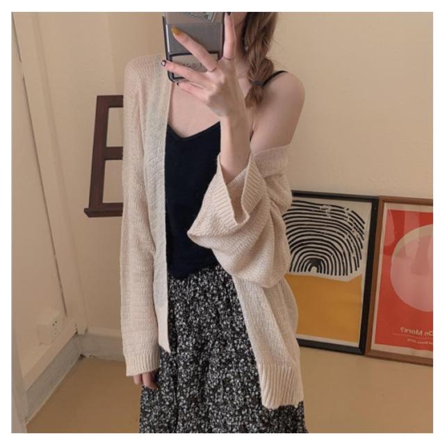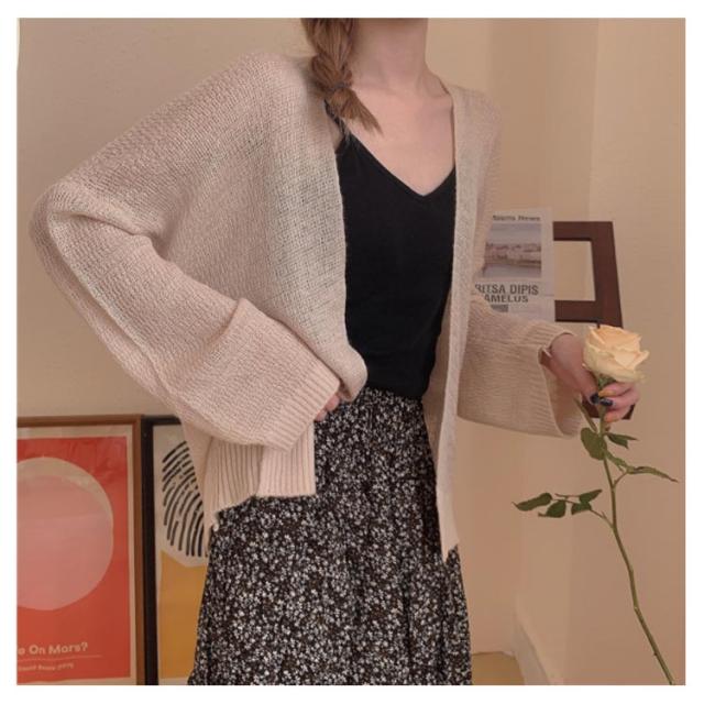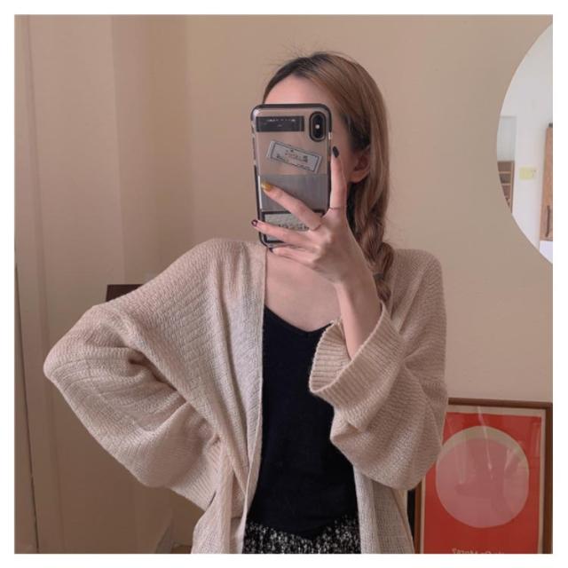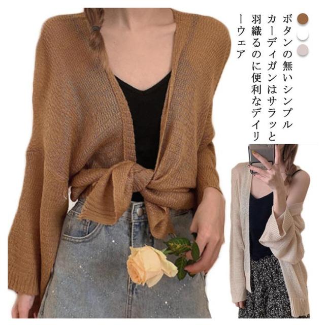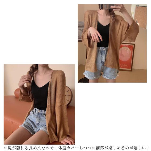 | ボタンの無いシンプルカーディガンはサラッと羽織るのに便利なデイリーウェア お尻が隠れる長め丈なので、体型カバーしつつお洒落が楽しめるのが嬉しい! | |