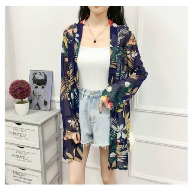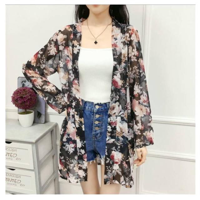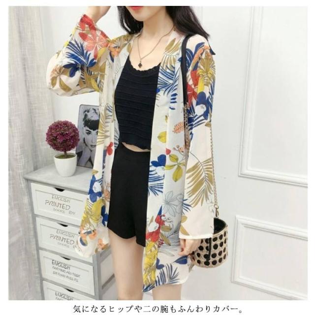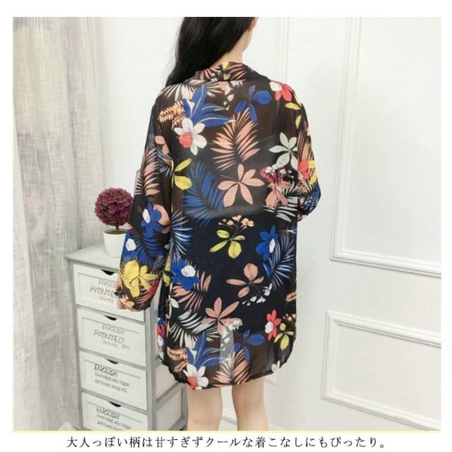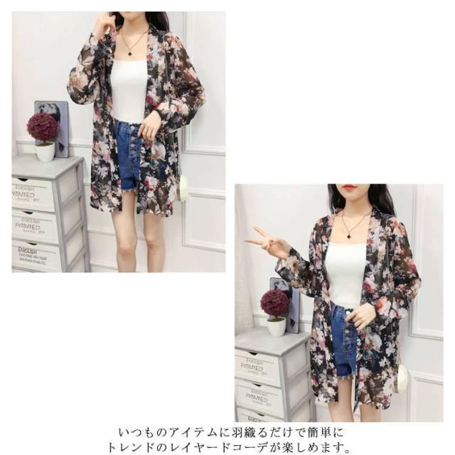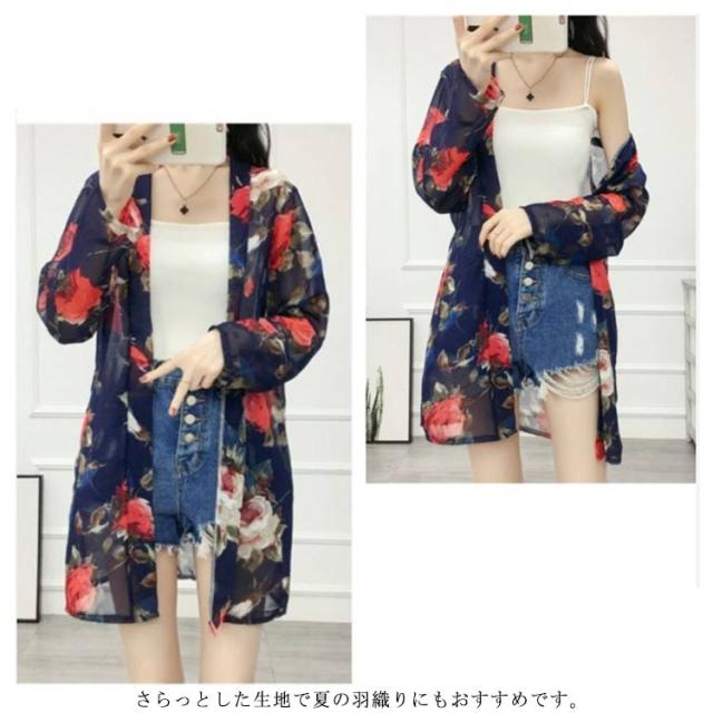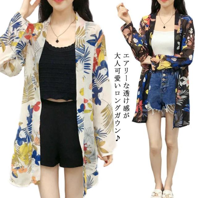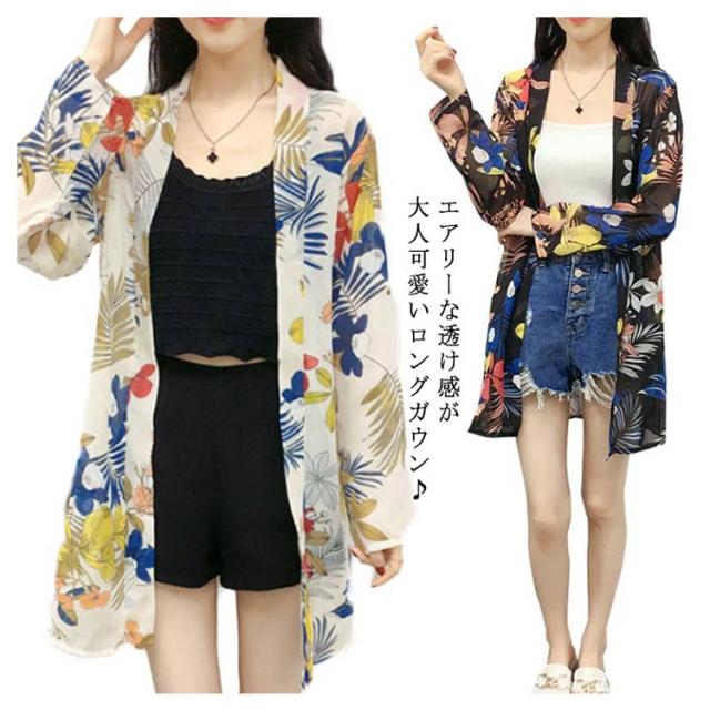送料無料 花柄 カーディガン 春 夏 レディース ロングカーデ シースルー 透け 長袖 ロングガウン 秋 羽織り ロング 花柄ガウン