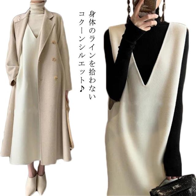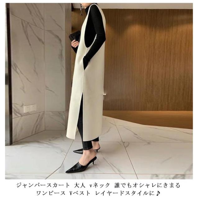 | 身体のラインを拾わないコクーンシルエット♪ ジャンパースカート 大人 vネック 誰でもオシャレにきまるワンピース Vベスト レイヤードスタイルに♪ | |
