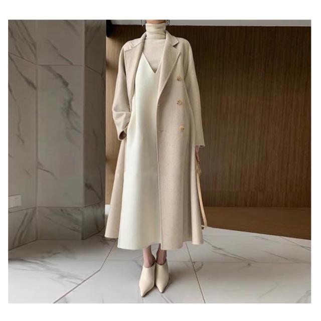 スリット入りウール混ジャンスカ 30%-50%ウール混 ジャンパースカート ワンピース Vネック 深Vネック 膝丈 ミディ丈 ロング丈 ゆったり 重ね着 大人 マタニティ フォーマル きれいめ 大きい ママ オフィス カジュアル