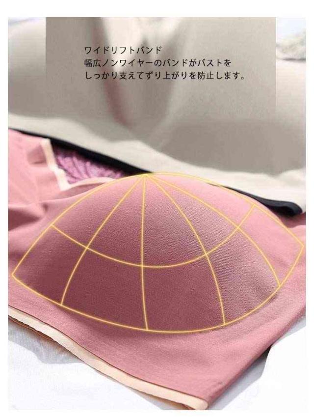 | 自由を叶える快適ブラ ノンワイヤーだから楽 幅広ショルダーで肩の負担を軽?してしっかり支えます。 背面も幅広設計 ノンホックで着けやすいだけではなく、背中も綺麗です。 ワイドリフトバンド 幅広ノンワイヤーのバンドがバストをしっかり支えてずり上がりを防止します。 伸縮性に優れた生地は、就寝時やリラックスタイムにも使います。24時間フルに活躍、美胸キープするならこれです! | |