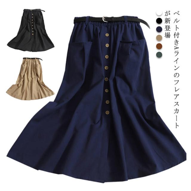 ラシャスカー ロングスカート ベルト付き オールシーズン Aライン ハイウエスト 【送料無料】フレアスカート フレア レディース 女性用 大人 マキシ丈 レディース 綿混紡 ロング丈 オシャレ 上品 ボトムス