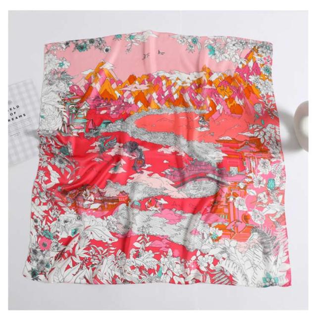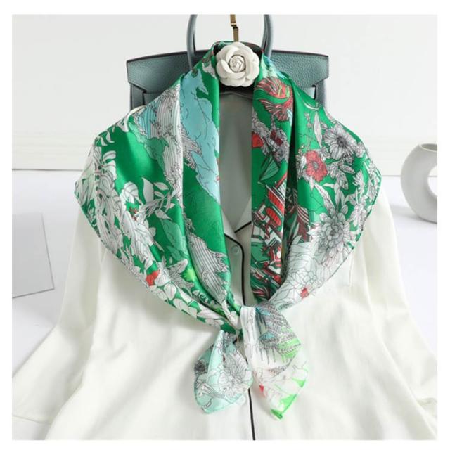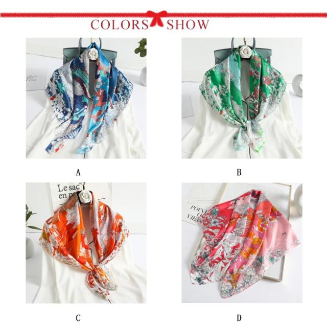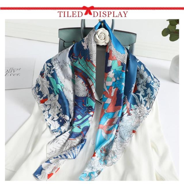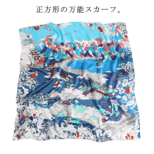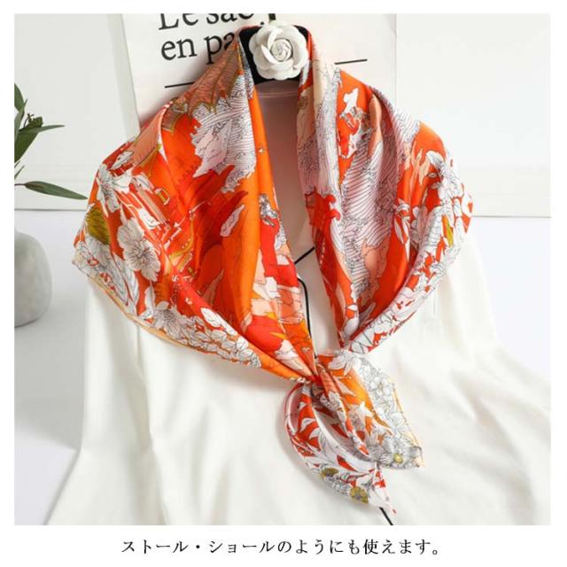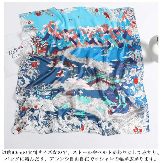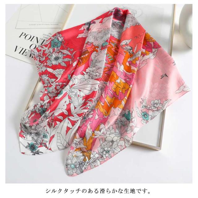 大判 正方形 スカーフ 90cm 総柄 柄 レディース ストール シルク調 ハンダナスカーフ ヘアクセサリー バッグチャーム バッグスカーフ 母の日ギフト 母の日プレゼント
