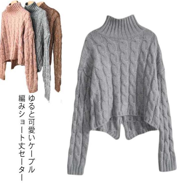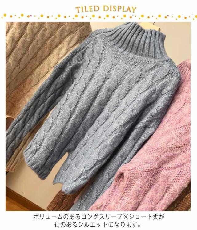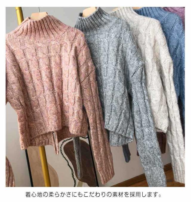 セーター セーター 長袖 レディース ニットセーター ゆったり ショート丈 ハイネック ケーブル編み ハイネックセーター 秋冬 春秋 スリット