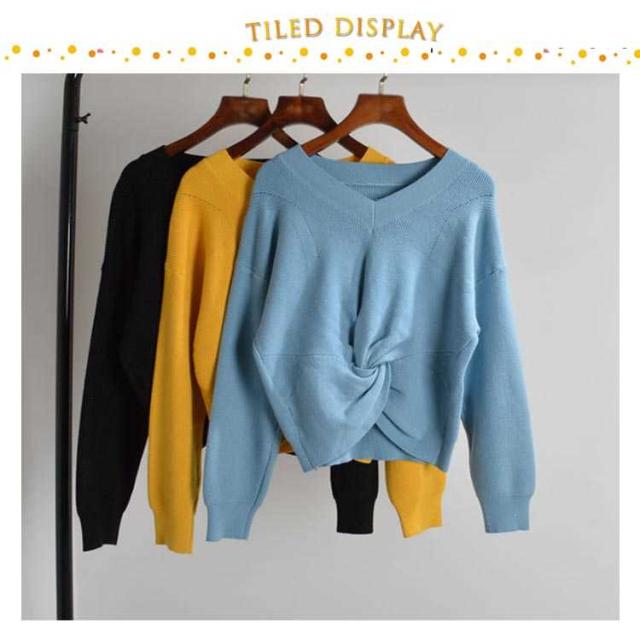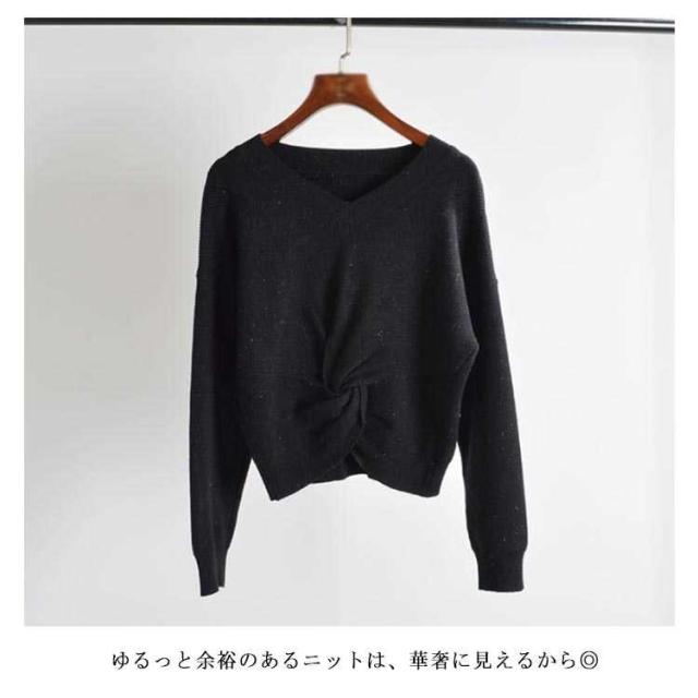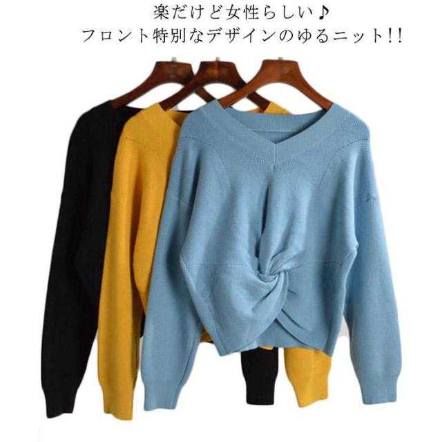| 楽だけど女性らしい♪フロント特別なデザインのゆるニット!! デコルテを綺麗に見せてくれるVネックデザインです。 ゆるっと余裕のあるニットは、華奢に見えるから◎ 季節の変わり目にはメイントップスとしてはもちろん、アウターの中に着込みやすいのもポイント! | |