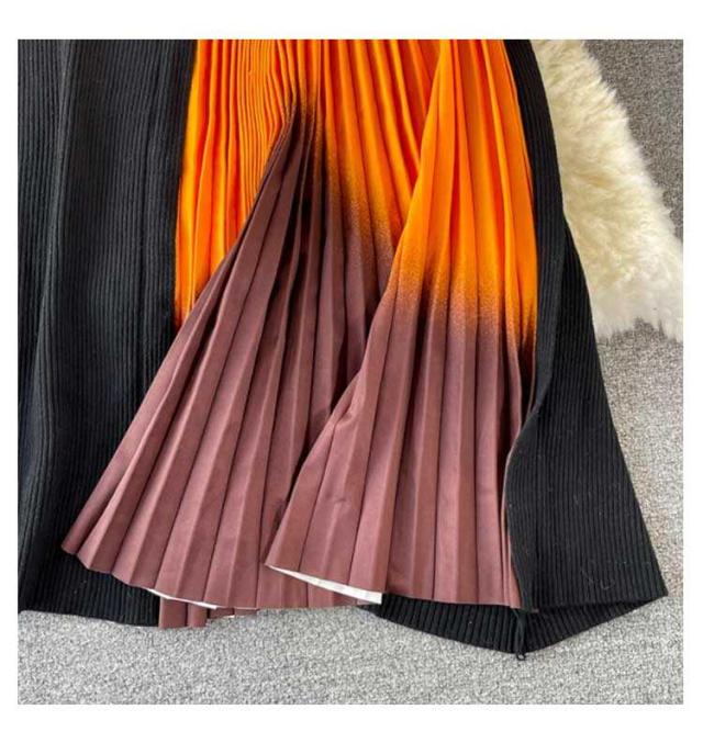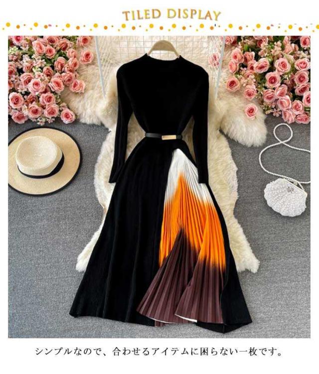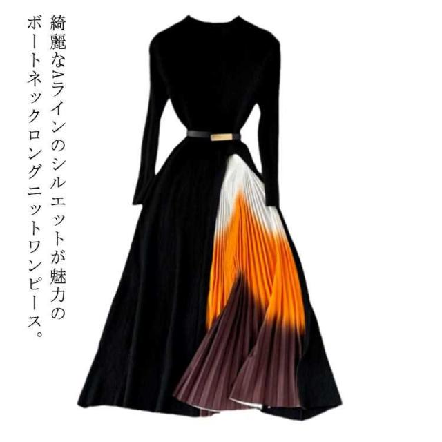 ランドネック 無地 秋 ニットワンピ フレアワンピース 冬 送料無料 ワンピース 冬 春 ロング丈 ミモレ丈 ニット プリールワンピース 長袖 エレガント シンプル 切替 ニット