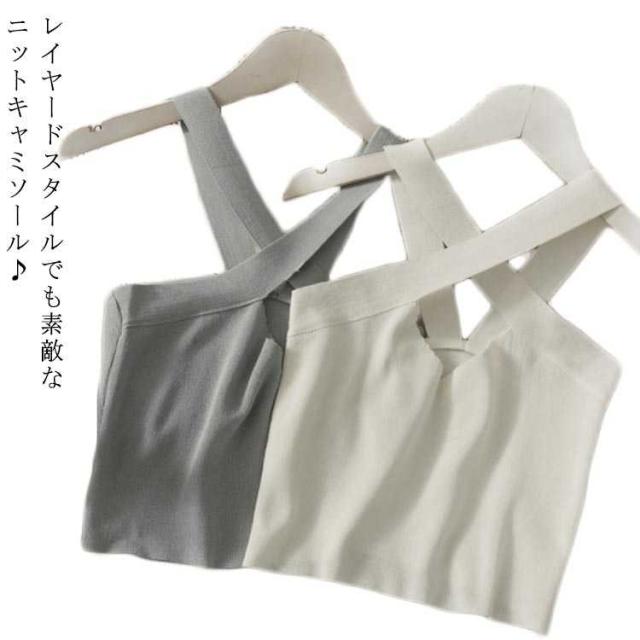 ニットキャミソール トップス ニット 重ね着 レイヤード ノースリーブ Vネック インナー 春秋 タンクトップ 大人 ゆったり ゆとり ニットキャミソール ニットキャミ