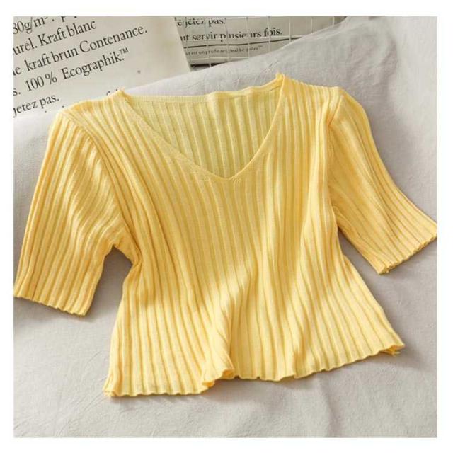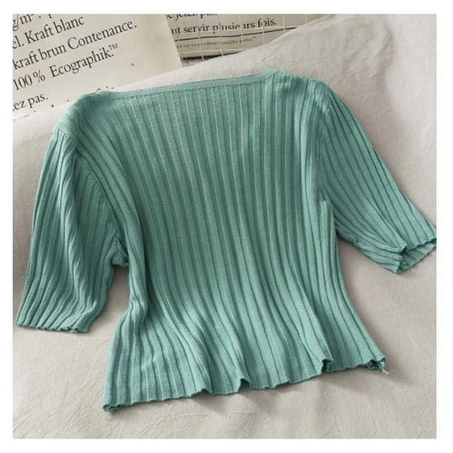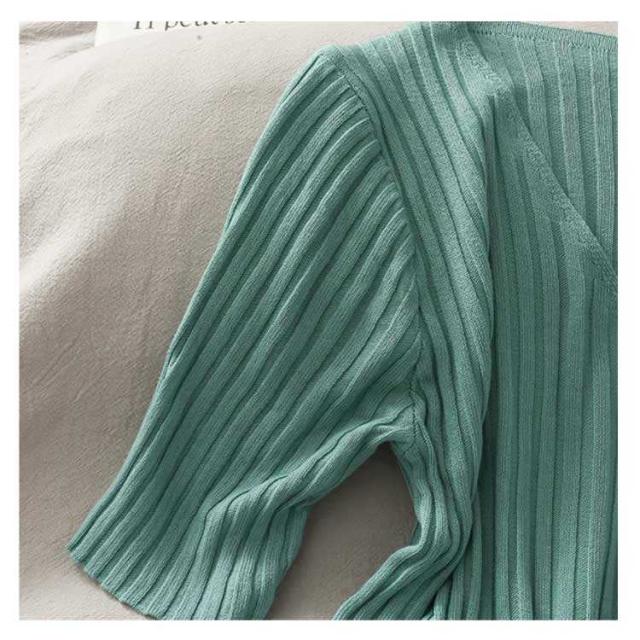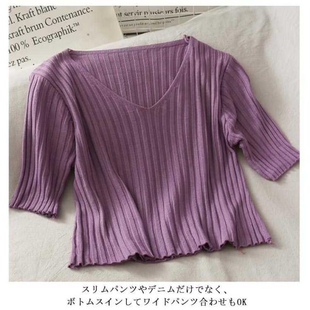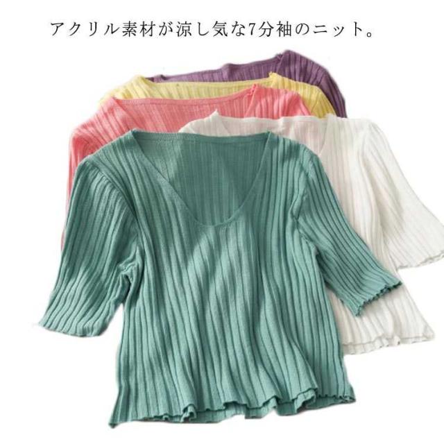 プルオーバー リブニット ブラウス レディース 7分袖 夏 シャツ おしゃれ Tシャツ 通勤 秋 トップス 大人 サマーニット レディース ンプル きれいめ オフィス 20代 30代 40代 50代 母の日 ギフト 春
