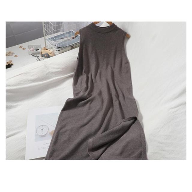 ニットワンピース 送料無料 ロング丈 ノースリーブ タートルネック スリット入り タンクトップワンピース サマーニット ミモレ ロング Aライン ジャンパースカート キャミソールワンピース ニットワンピ ニットベスト
