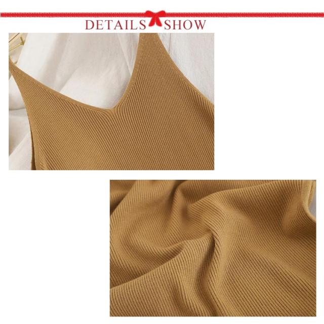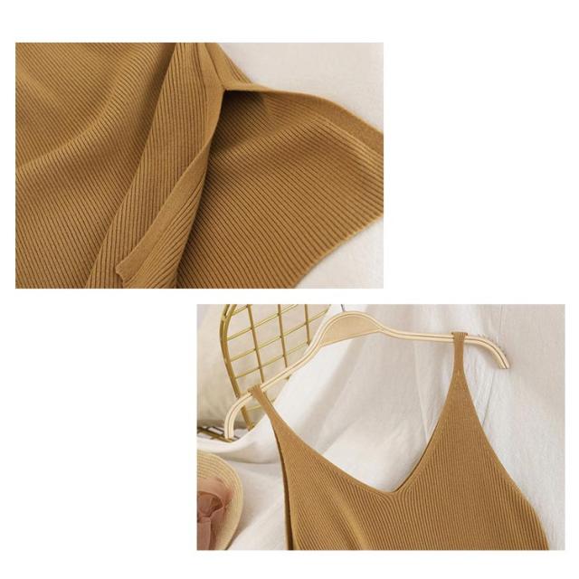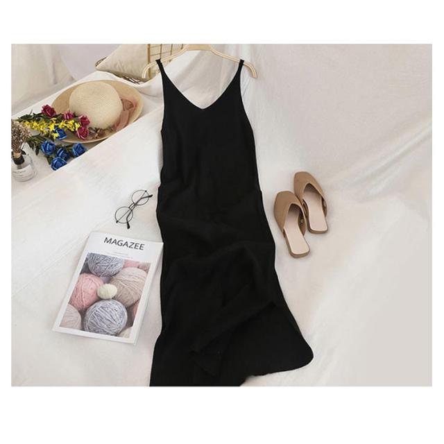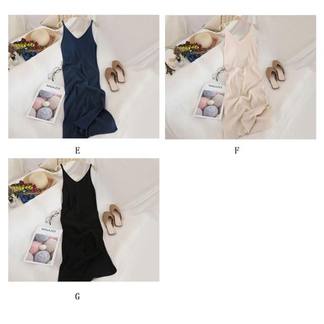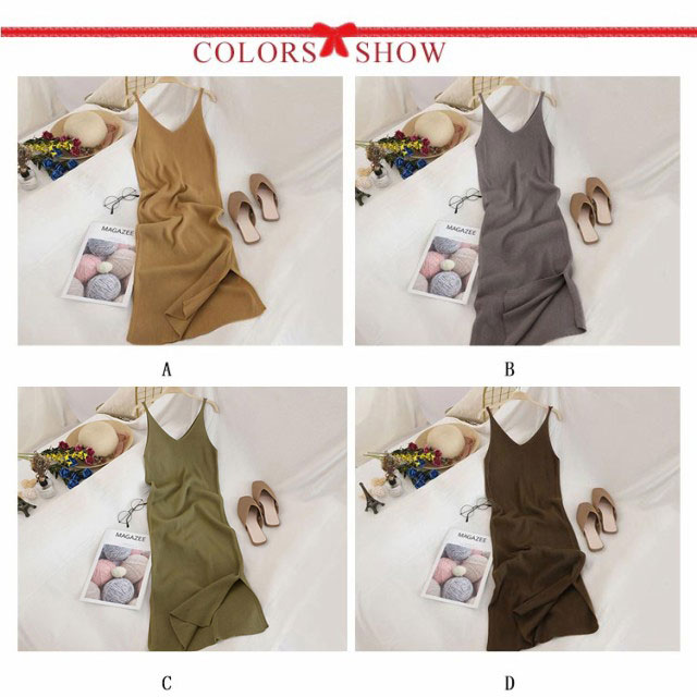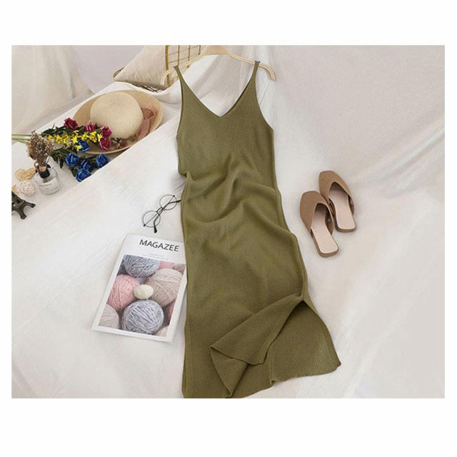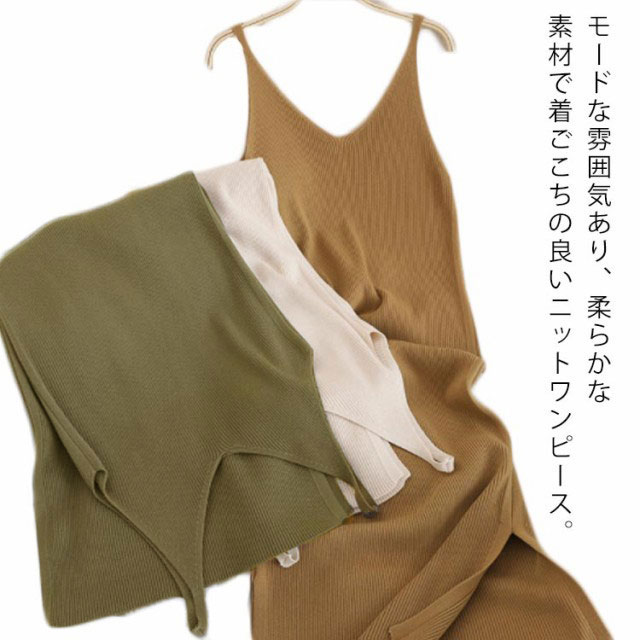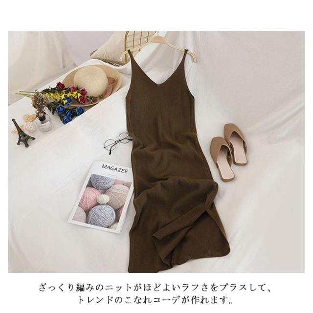 ノースリーブ ワンピ ワンピース シンプル ニットワンピース キャミワンピース キャミソール ニット ロング丈 Vネック ロングワンピース ニットワンピ 春 夏 秋 冬 ニット