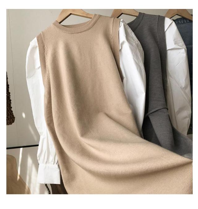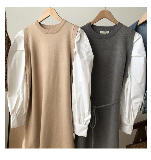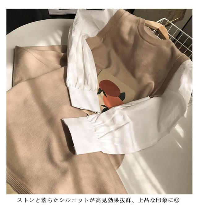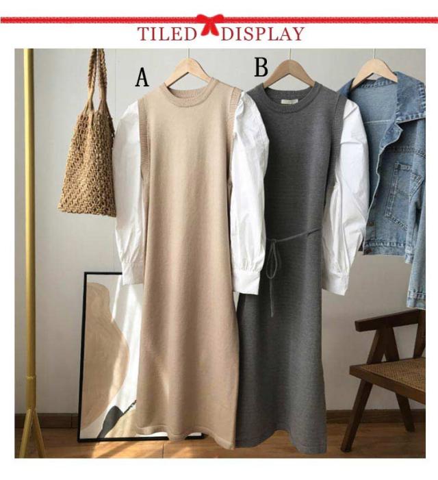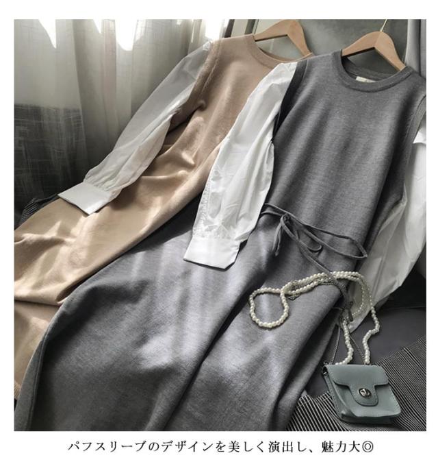 送料無料 ニット シャツワンピース 長袖 パフスリーブ 春 夏 シャツ ワンピース ニット レディース カットソー ミモレワンピース 膝丈 ひざ丈 チュニックワンピース 体型カバー ゆったり カジュアル マキシワンピース
