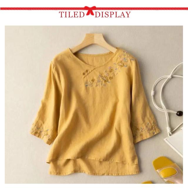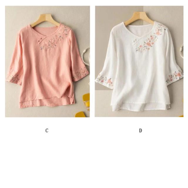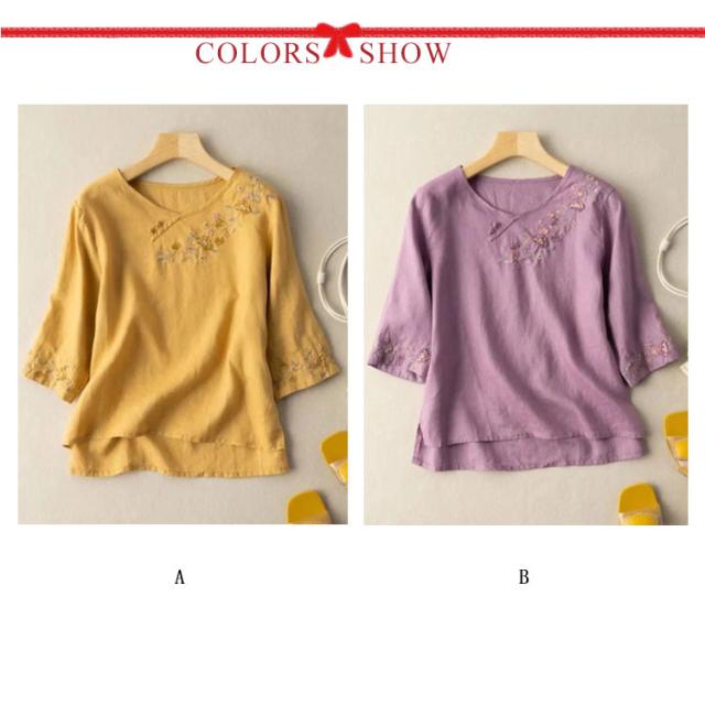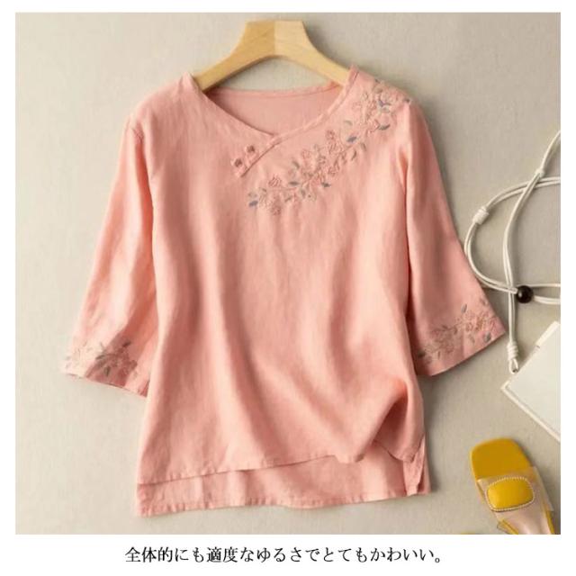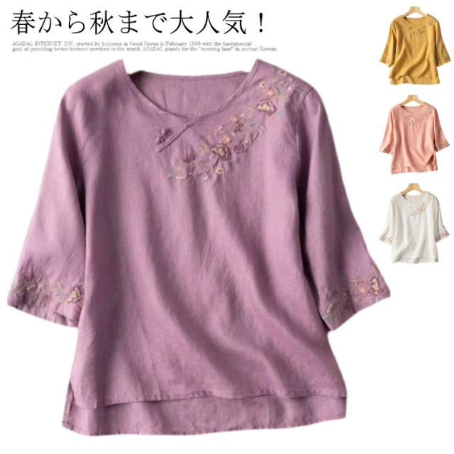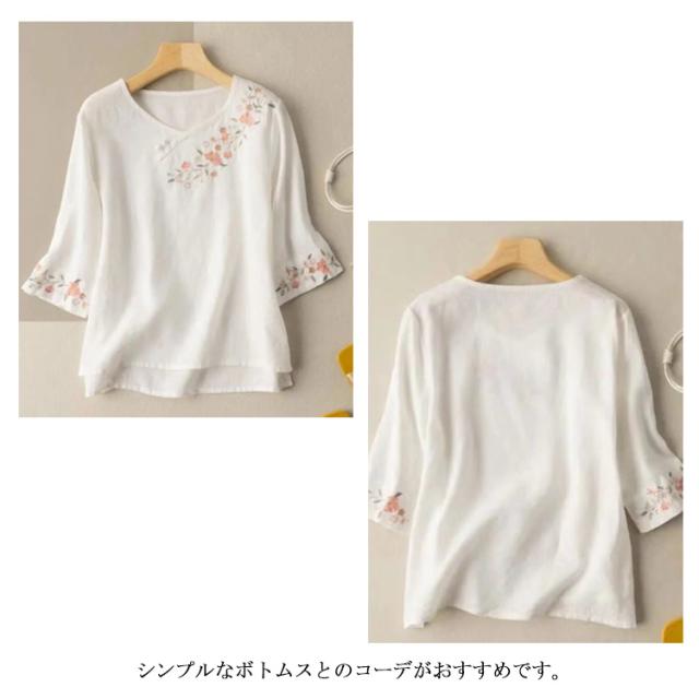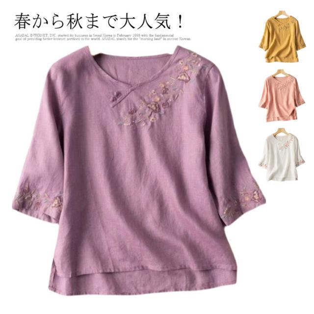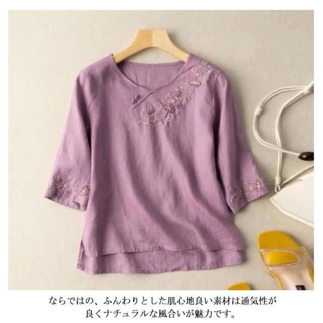 送料無料 リネン ブラウス シャツ 麻 綿麻 カットソー 長袖 刺繍 トップス レディース パフスリーブブラウス ワイド ブラウス 半袖 五分袖 七分袖 チュニック シャツ パフスリーブ 春夏 おしゃれ ナチュラル 体型カバー 大人 可愛い