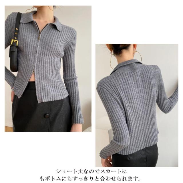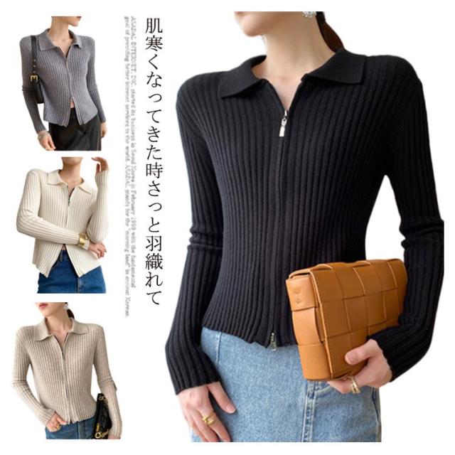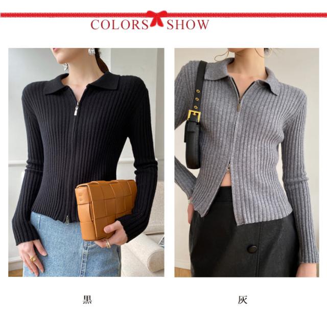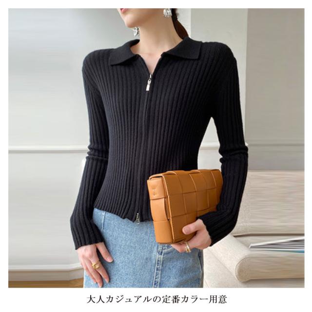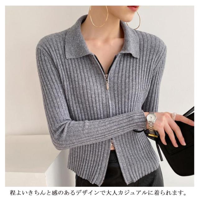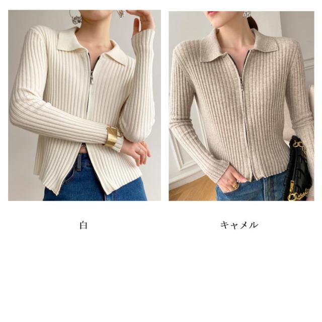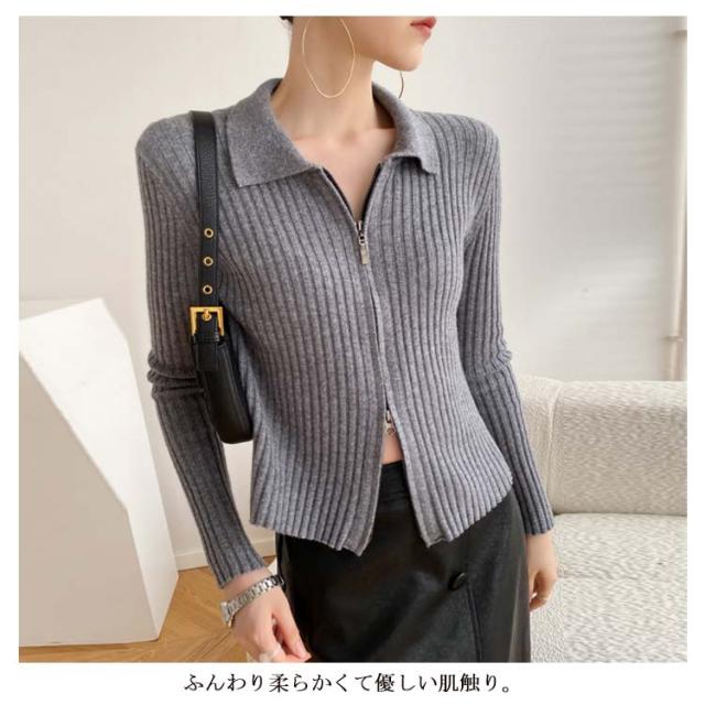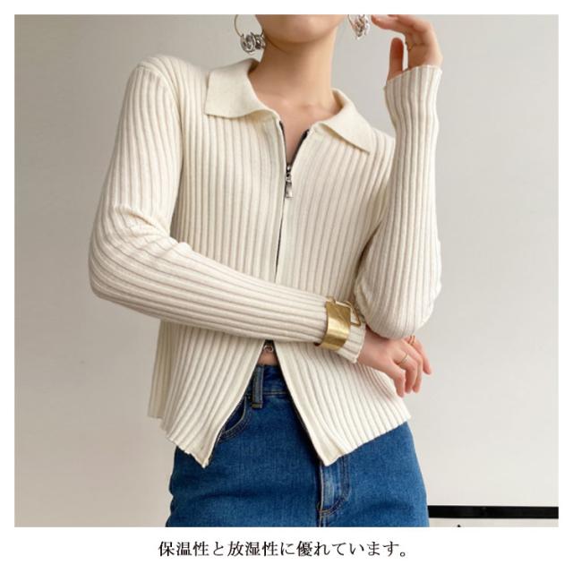 ニットカーディガン リブニットカーディガン ダブルファスナー開閉 ジップアップ ニット セーター ニット生地 レディース セーター 無地 長袖 羽織 カーデ はおり 羽織 レディース トップス 上着 柔らか 暖かい 軽い