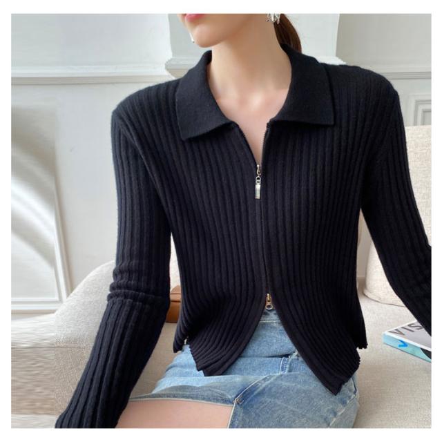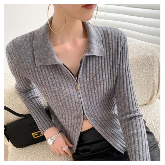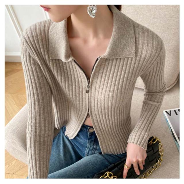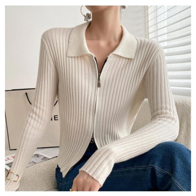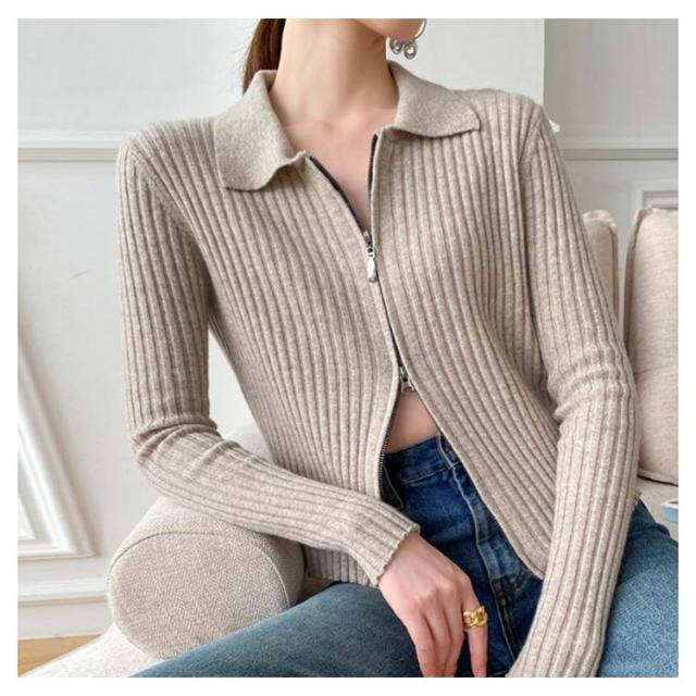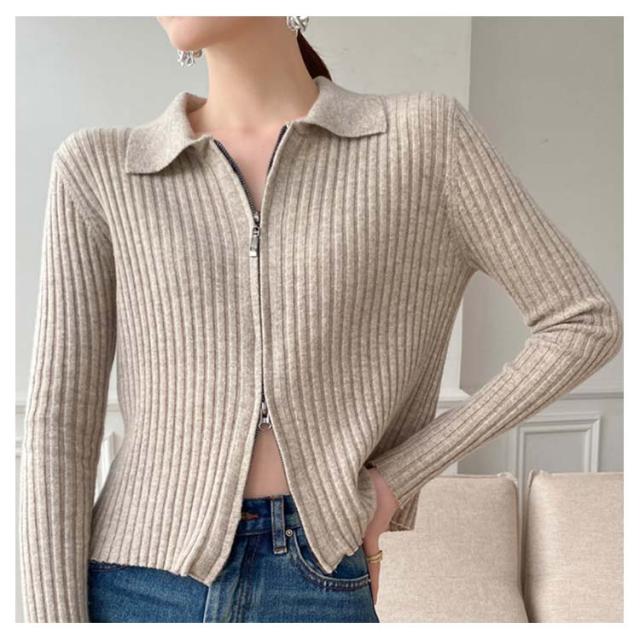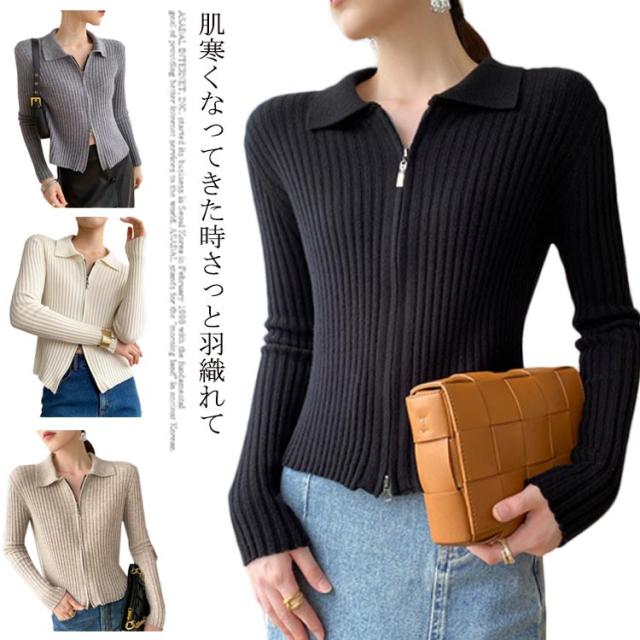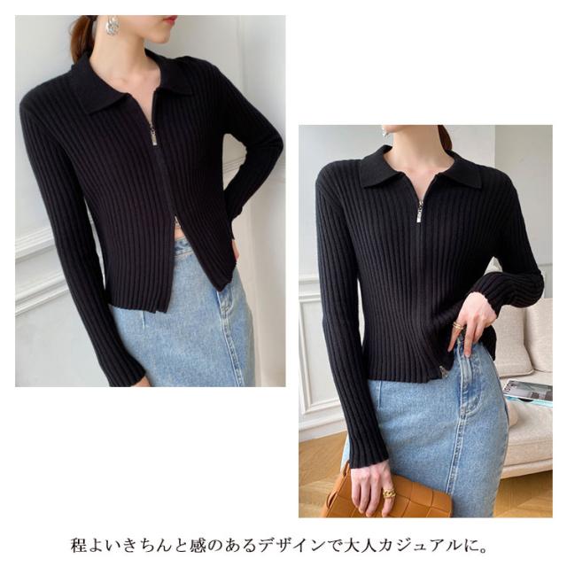 ニットカーディガン リブニットカーディガン ダブルファスナー開閉 ジップアップ ニット セーター ニット生地 レディース セーター 無地 長袖 羽織 カーデ はおり 羽織 レディース トップス 上着 柔らか 暖かい 軽い