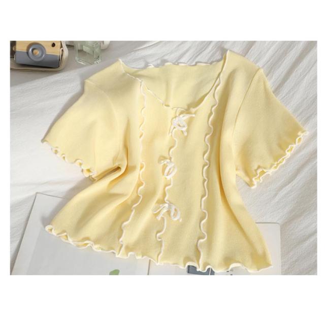 | セクシーで可愛い夏の半袖ニットカットソー。 ウエストが細見えする程よくシェイプされたので女性らしさをプラス。 伸縮性があり、着脱もしやすく快適着れます。 軽い着心地ですので、夏でも着ていたけるのが魅力の一つ。 | |