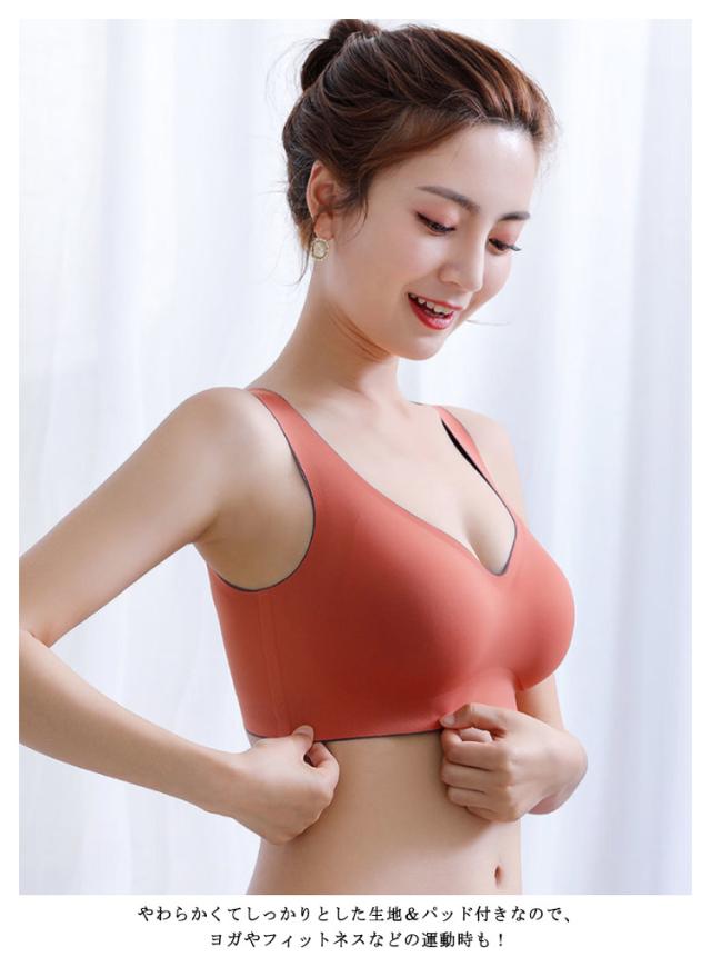 | お部屋でのリラックスタイムやスポーツ時にも◎ ノンワイヤー ブラトップ スポーツブラ ノンワイヤーでストレスフリーだから24時間着用OK! 伸縮自在の素材が窮屈感なしで体にフィットして、しっかりバストを包み込んでキープしてくれます。 やわらかくてしっかりとした生地&パッド付きなので、ヨガやフィットネスなどの運動時も! アウターに響かないので、会社や外出時にも!締め付けないので、寝るときやお部屋でも! カラバリ豊富なので色違いで揃えてもかわいいノンワイヤーブラジャーです。 | |