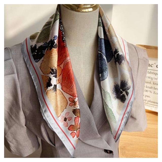 | デイリー使いしやすい大判サイズのスカーフ 光沢感のある柔らかな生地で、高見えするスカーフ。 普段のコーデにプラスするだけで上品でこなれた印象に。 首元やバッグ、ヘアアクセサリーとしてなど様々なアレンジが楽しめます。 お弁当のラッピングや友達へのお菓子等のギフトラッピングなどコスパがいいので、そのままスカーフごと、プレゼントすると喜ばれます。何かと使えるアイテムなのでおすすめです。 ◇コーディネート◇ シンプルコーデとの相性抜群な、巻くだけでこなれ感たっぷりなスタイルを演出できるアイテム。 ヘアアクセサリーやバッグアクセサリーとしてなど幅広いアイテムとのアレンジが楽しめます。 | |