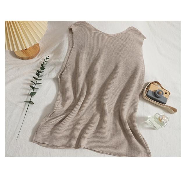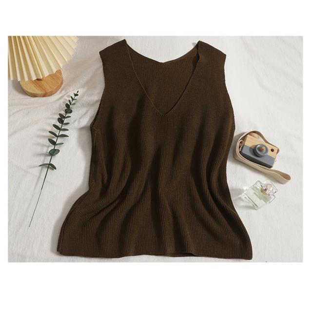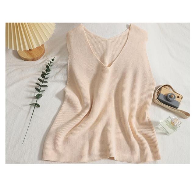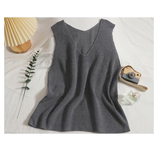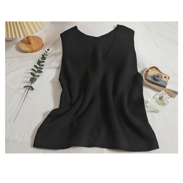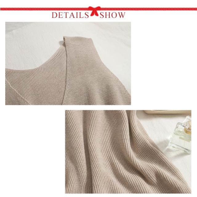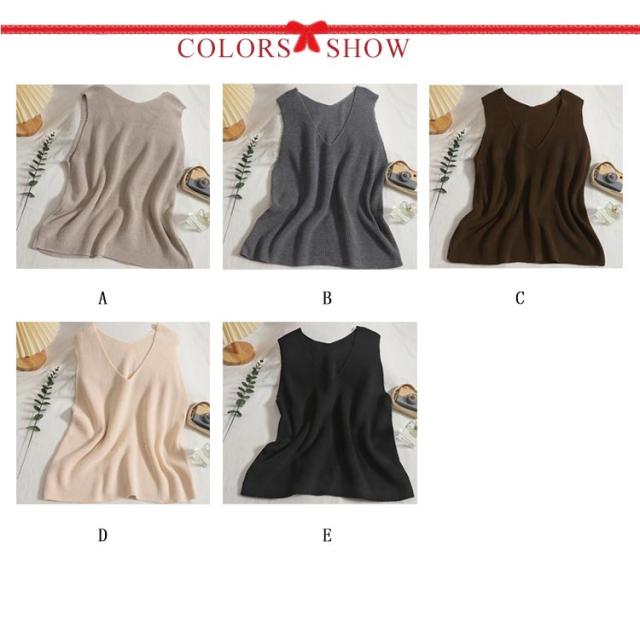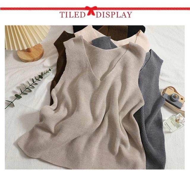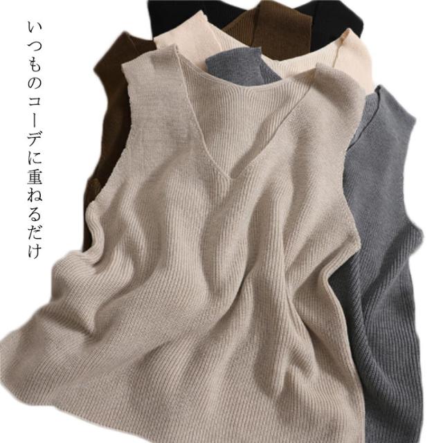 トップス タンクトップ ニットタンクトップ vネック 重ね着 ベスト ノースリーブ ニットベスト タンク レイヤード ニットベスト レイヤード風 レディース
