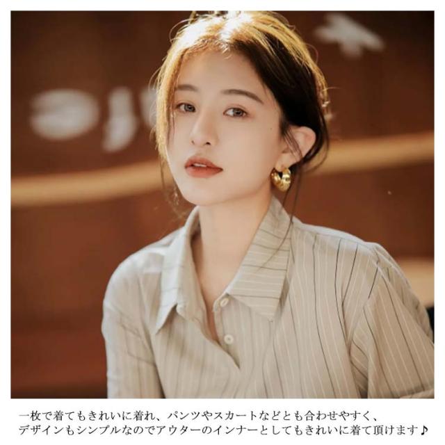 送料無料 カジュアルシャツ レディース チュニック 長袖 ストライプシャツ ブラウスシャツ ブラウス スーツ 夏 大人 Yシャツ 重ね着 シャツ 秋 冬 通勤 シャツ 長袖シャツ 30代 トップス 20代 春