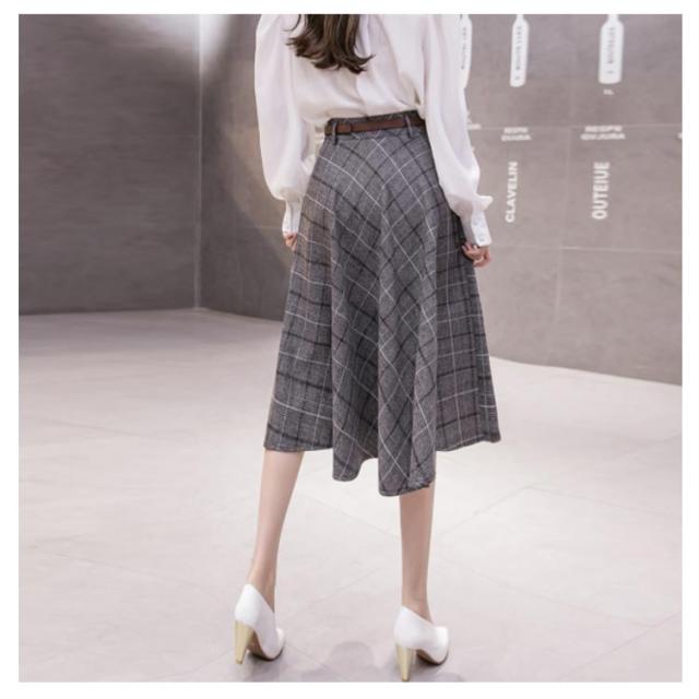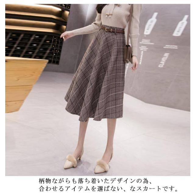 グレンチェック柄 チェック柄 ベルト付き レディース ロングスカート aラインスカート ミモレ丈 膝下丈 総柄 体型カバー ボトムス スカート 大きいサイズ フレアスカート