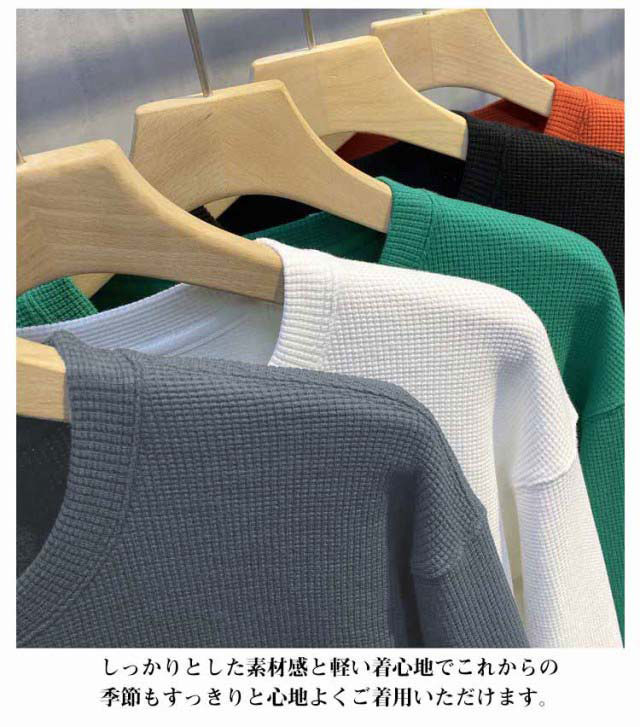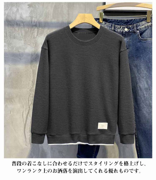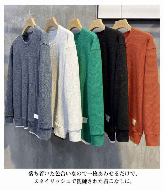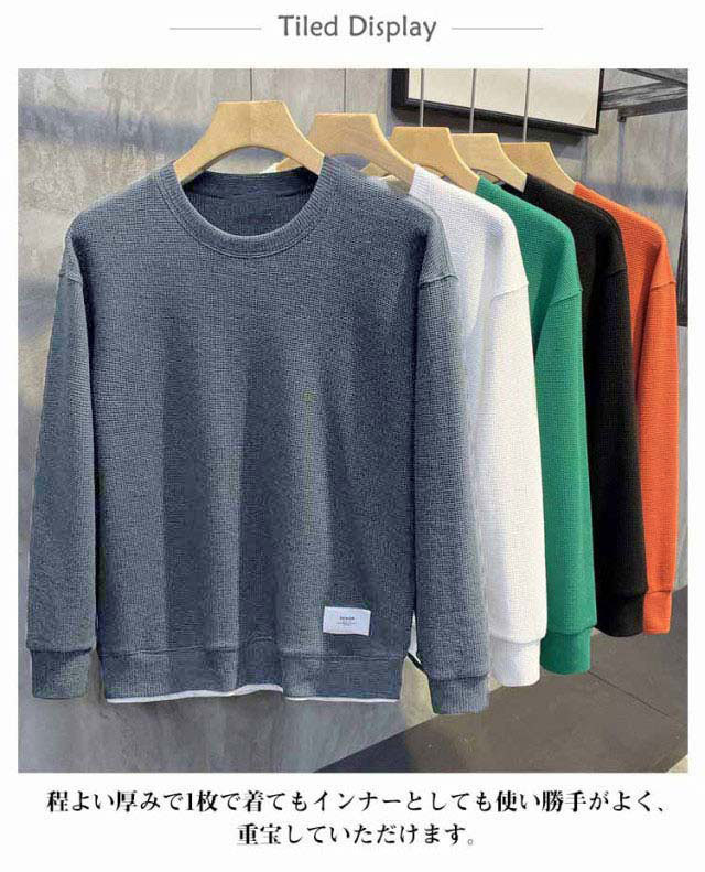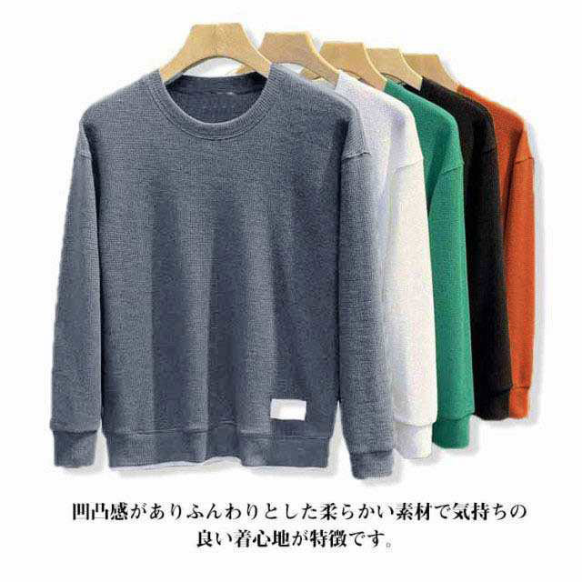 スウェット メンズ 長袖 クルーネック トレーナー ワッフル ロングTシャツ カットソー メンズファッション トップス 無地 ワッフル きれいめ カジュアル ファッション ストリート ルームウェア 部屋着