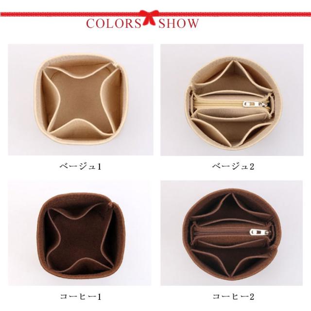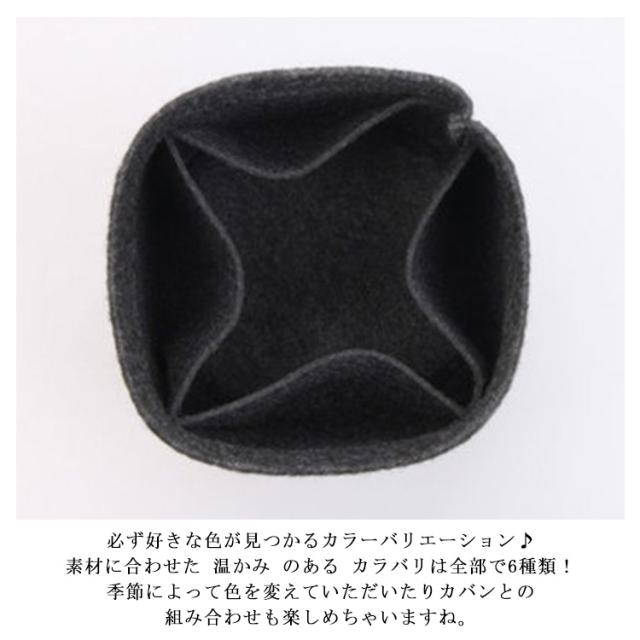 | ・鞄 によって選べるサイズ♪ お使いの鞄や、中身に合わせてお好きなサイズをお選びください。 ・細かいものもきちんと収納できちゃう ポケット ♪ ポケット10つ それぞれポケットがついています。 カバンのなかで見失いがちな、リップクリームや鍵など いざというときサッとでてこない、パスケース 気付いたらくしゃくしゃになっている、ポケットティッシュや除菌シート このようなものも、しっかり整頓して収納できるのでもうイライラにはサヨナラ! ・とっても軽〜い♪ フェルト使うものだから、負担になりにくいようとっても軽くできているので持ち運ぶ際の重みも気になりません。 ・分厚い フェルト でしっかり自立♪ お客様の熱い声にお応えし、しっかりとしたフェルト生地でリニューアルいたしました! 鞄のなかで、へたらずに、中身を仕分けてくれることはもちろん、自立しない柔らかいバッグを使うときもこのバッグインバッグを中に入れることでしっかりと 自立 し、より一層使いやすくなります。 ・デスク回りの 小物入れ に♪ バッグインバッグとしてだけでななくデスク回りの小物の整頓にもピッタリ! 温かみのあるおしゃれな フェルト生地 を使用していますのでインテリア としてもおすすめしたい商品です。 ・必ず好きな色が見つかるカラーバリエーション♪ 素材に合わせた 温かみ のある カラバリは全部で6種類! 季節によって色を変えていただいたりカバンとの組み合わせも楽しめちゃいますね。 | |