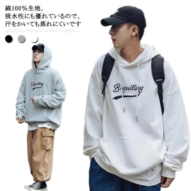 パーカー メンズ レディース ユニセックス プルオーバー スウェット パーカー スウェットパーカー フード付き 綿100% プリント アメカジ ストリート 大きいサイズ 長袖 トップス 羽織り 春 春物 秋物 お洒落 カジュアル シンプル