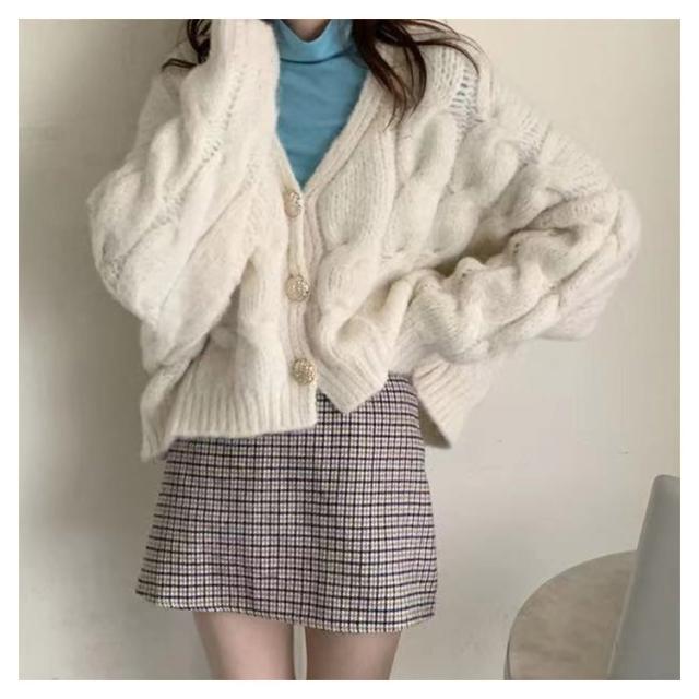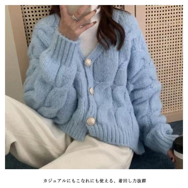 ニットカーディガン レディース ケーブル編み ショート 長袖 Vネック コーディガン ボタンカーディガン ニットセーター ニットトップス 春秋 春服 秋服 アウター 送料無料