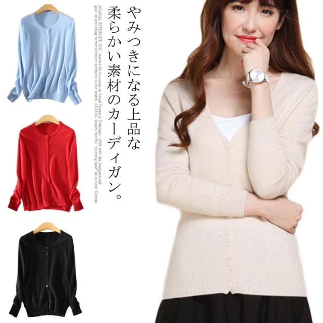 オフィス セーター ニットカーディガン スタンダードカーディガン Vネック カラーカーディガン トップス ニット 長袖 ニット生地 羽織 カーデ レディース
