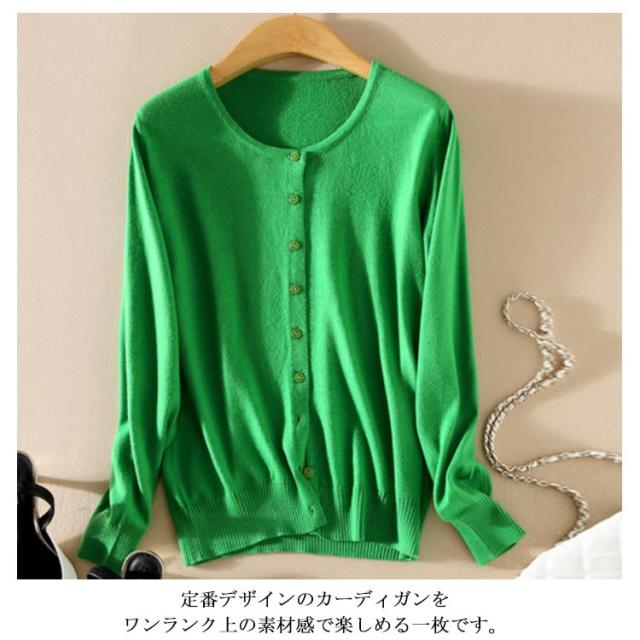 | やみつきになる上品な柔らかい素材のカーディガン。 普段使いからオフィスまでストレスフリー着ていただけます。 定番デザインのカーディガンをワンランク上の素材感で楽しめる一枚です。 | |