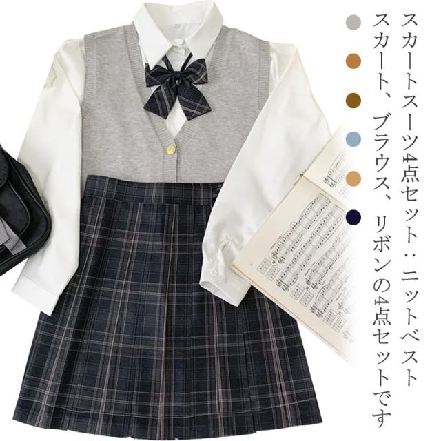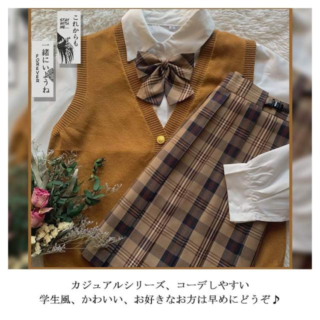 | スカートスーツ4点セット:ニットベスト、スカート、ブラウス、リボンの4点セットです。 中学生・高校生の学生制服や行事ごと、なんちゃって制服にもおすすめです。 通学用はもちろん、入学式、学園祭、文化祭、発表会などにピッタリなスーツです。 カジュアルシリーズ、コーデしやすい、学生風、かわいい、お好きなお方は早めにどうぞ♪ | |