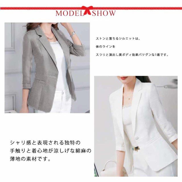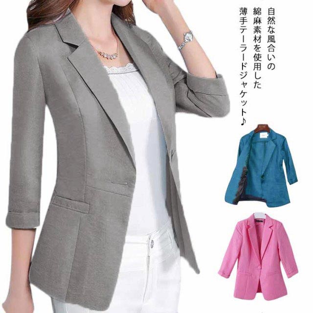 サマージャケット 送料無料 綿麻ジャケット 春 ジャケット レディース カジュアル 涼しい 綿麻 テーラードジャケット サマー 軽量 薄手 ミディアム丈 通勤 オフィス