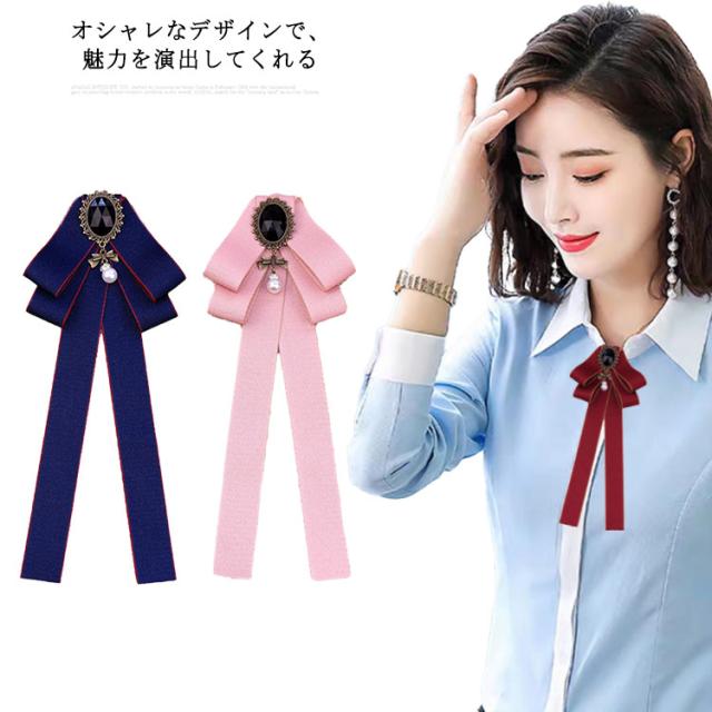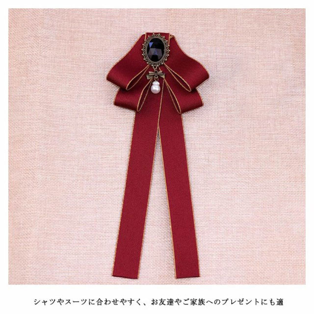 リボンブローチ リボンタイ ピン式 メンズ レディース キッズ 子供 リボン ネクタイ イギリス風 パール付き フォーマルネクタイ 無地ネクタイ ブラウス アクセサリー ファッション小物