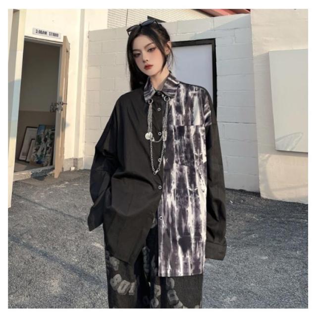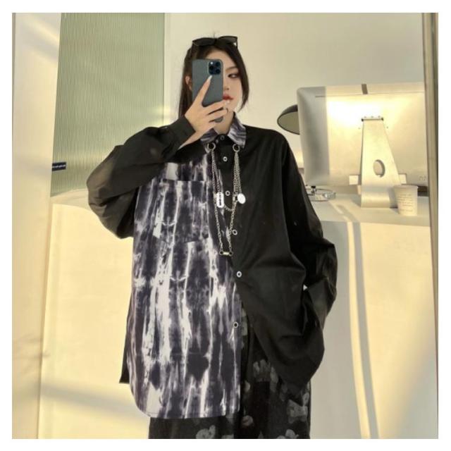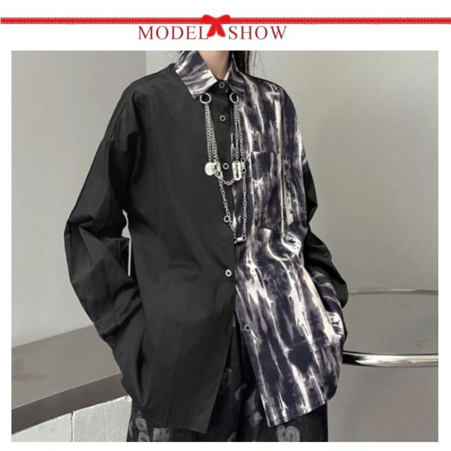 【送料無料】 ビッグシルエットシャツ 男女兼用 ユニセックス メンズシャツ レディースシャツ 長袖 オーバーサイズ 原宿系 b系 モード系 個性的 黒 白 モード系 韓国