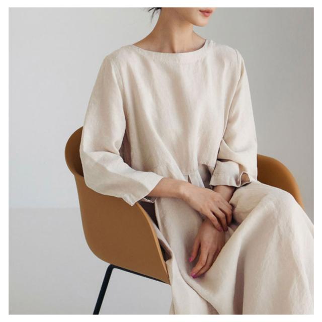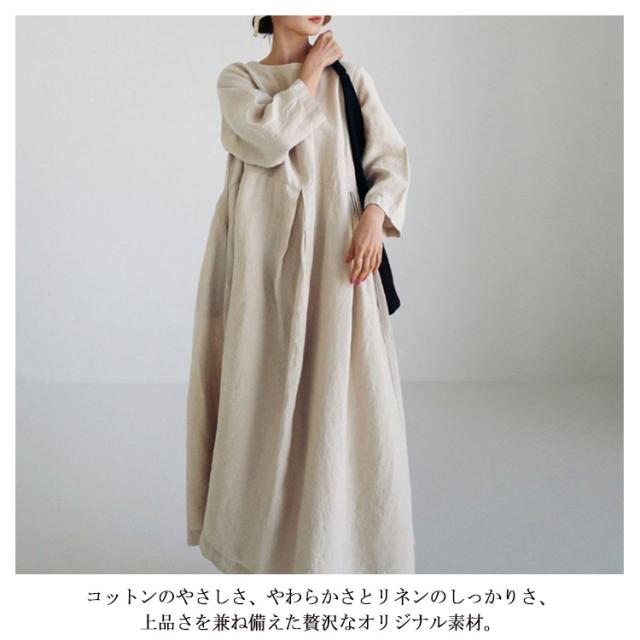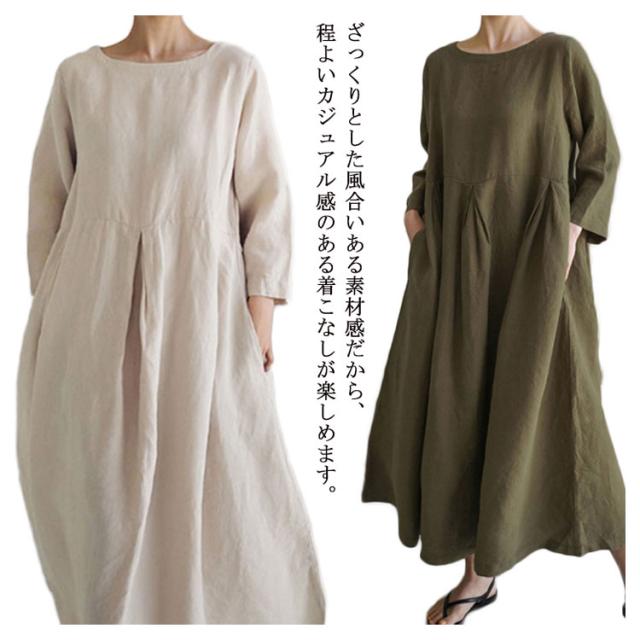 ロングワンピース ロングワンピース ナチュラル 綿麻 リネンワンピース リネン コットン 体型カバー 無地 カジュアル シンプル リネンワンピース レディース 大きいサイズ ゆったり 春夏 長袖
