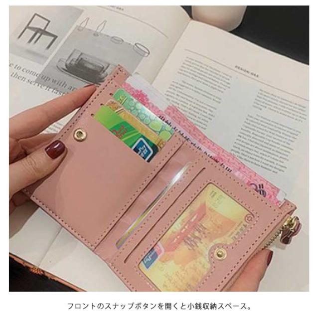 | 収納容量も兼ね備えるミニ財布 手のひらサイズの二つ折りミニウォレット。 フロントのスナップボタンを開くと小銭収納スペース。 内側にはお札入れとカード収納スペース。 カードポケットは5ヶ所と充実しているのも嬉しいポイント! さらに切り替えがファッショナブルなアクセントをプラス! 持ち運びしやすい、ちょっとそこまでのお出かけにも便利なミニウォレット財布です。 | |