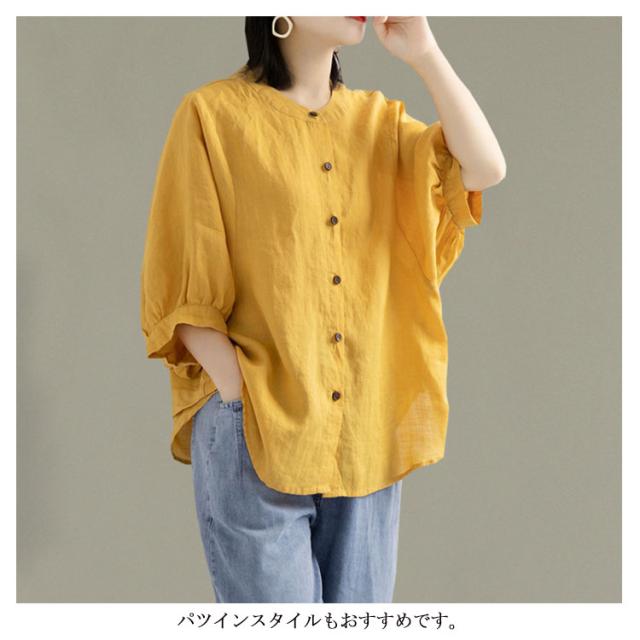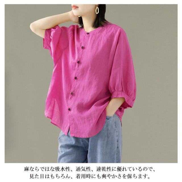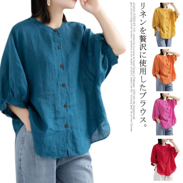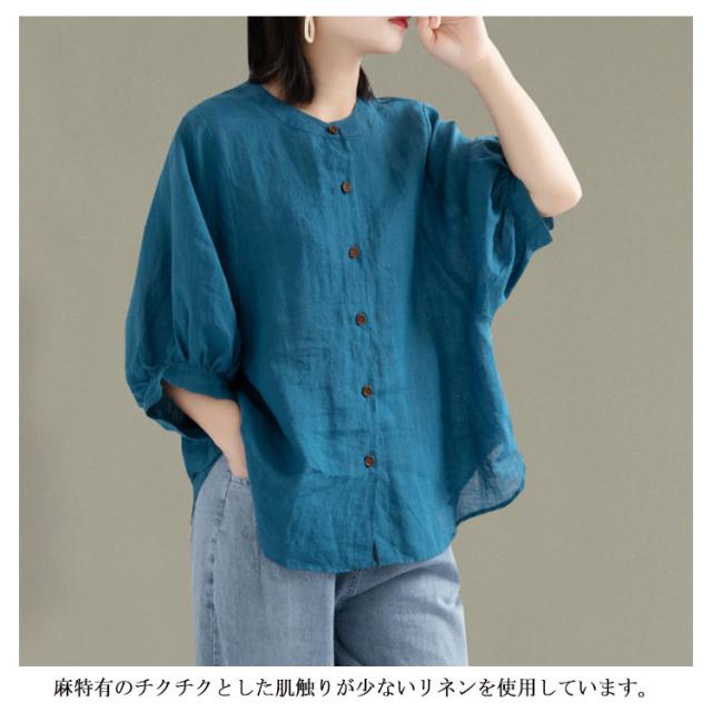 リネンシャツ リネンブラウス リネンブラウス レディース シャツ 長袖 七分袖 天然素材 トップス チュニック ミセス ファッション 30代 麻