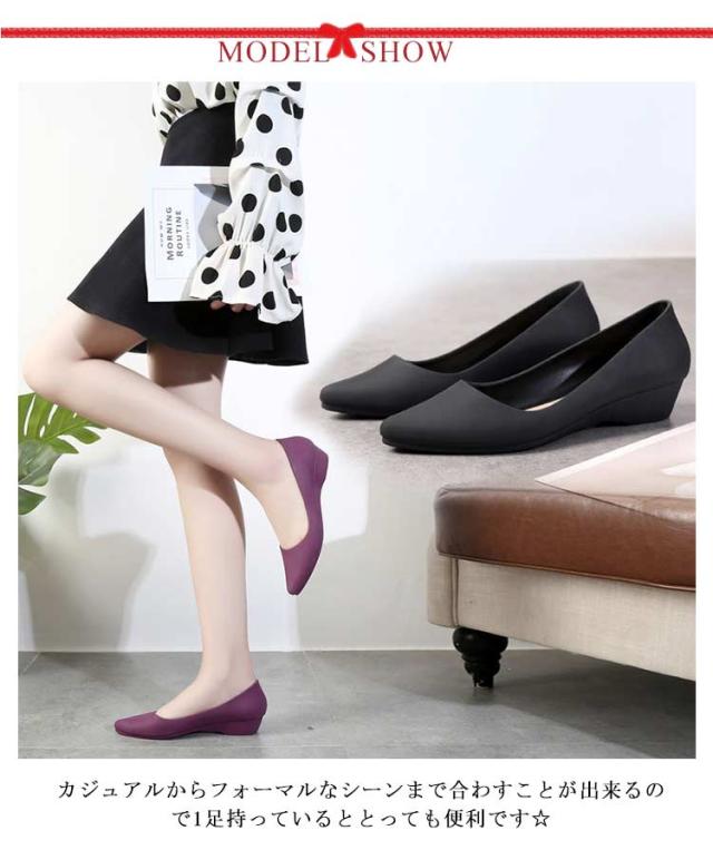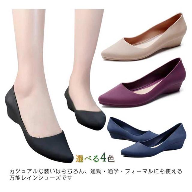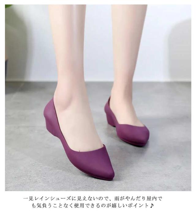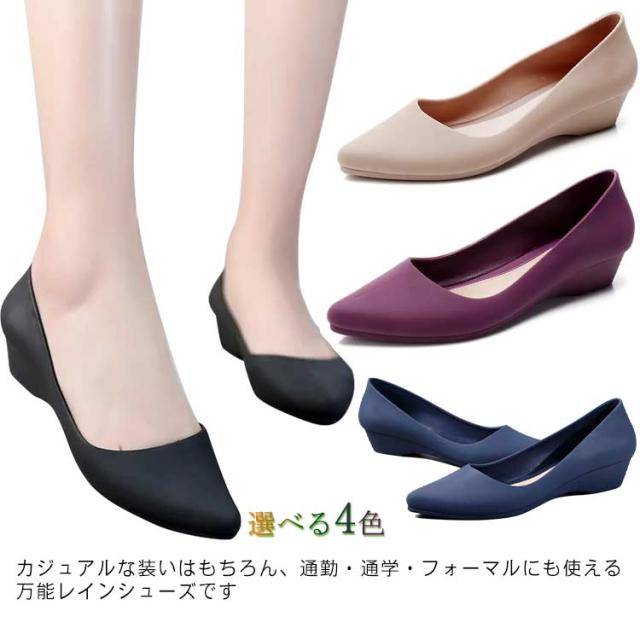 ローヒール おしゃれ レディース レインシューズ パンプス おしゃれ 晴雨兼用 防水 梅雨 梅雨対策 Vカット レインパンプス