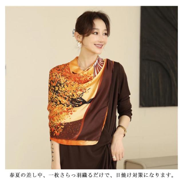 | 肩から羽織るとちょうどいい大きさ春・夏・秋とオールシーズン活躍します 薄く柔らかい肌触り☆ 華やかな柄がコーデを明るくしてくれます シンプルなコーデの差し色として... 顔回りが明るくなり小顔効果も◎ 春夏の差し中、一枚さらっ羽織るだけで、日焼け対策になります。 | |