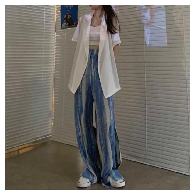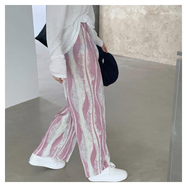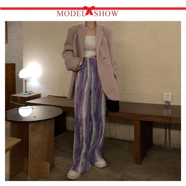 プリーツ パンツ プリーツパンツ タイダイ タイダイ柄 ウエストゴム ハイウエスト ロング丈 レディース ストレートパンツ 夏 涼しい 黒 ブラック 夏 春秋 リラックスパンツ 楽パン