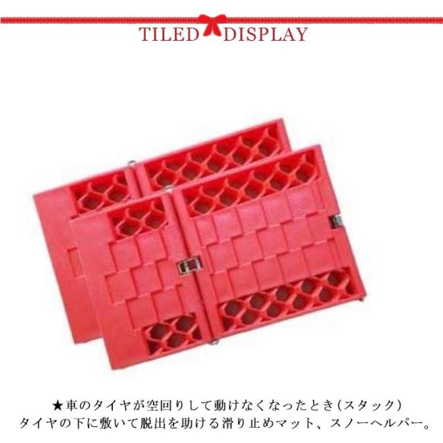 | ★車のタイヤが空回りして動けなくなったとき(スタック) タイヤの下に敷いて脱出を助ける滑り止めマット、スノーヘルパー。 ★積雪路、凍結路、砂路、泥路などの悪路を走行する際 車内に携帯していると安心です。 ★駆動タイヤの下に敷くだけで簡単。 冬の凍りついたウインドウの雪や下を落とす際もご使用頂けます。 ★耐荷重:3.5トン、摩擦に強く丈夫な素材で安全に使用できます。 | |