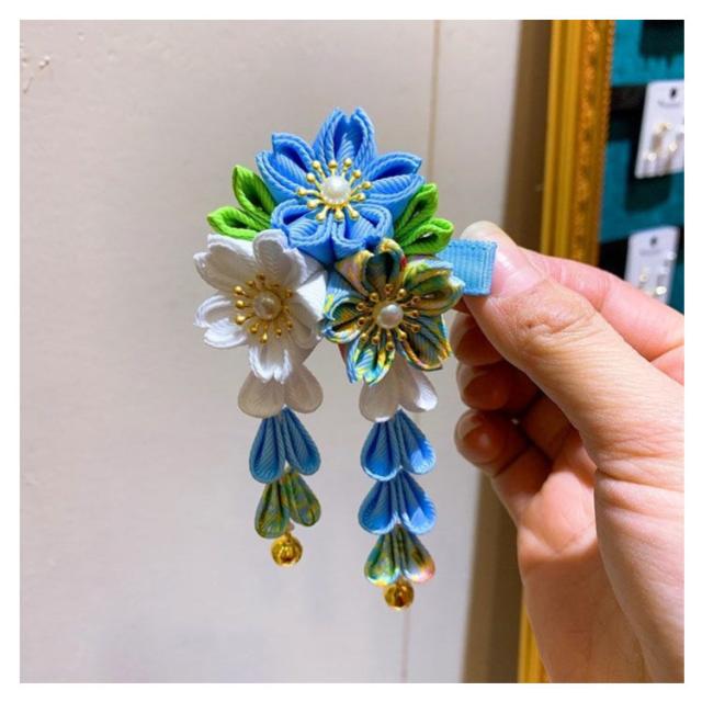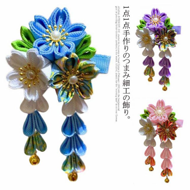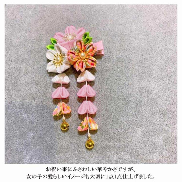 七五三 髪飾り 三歳 七歳 花 つまみ髪飾り つまみ細工 和風 ヘアーアクセサリー 鈴付き 卒園式 卒業式 かわいい おしゃれ こども 女の子 お正月 きもの お祝い