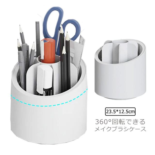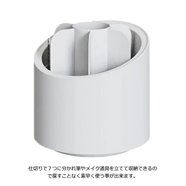 | 360°回転できるメイクブラシケース 仕切りで7つに分かれ筆やメイク道具を立てて収納できるので探すことなく素早く使う事が出来ます。 お化粧の時間もとても便利♪ | |