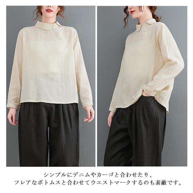 長袖 シャツ 綿麻混 綿麻 シャツ リネンブラウス レディース リネン 【送料無料】 ナチュラル ブラウス トップス シンプル 無地 着痩せ ゆったり 体型カバー カジュアル 可愛い 春 シャツ