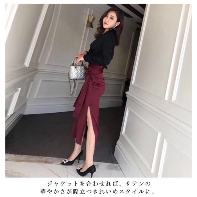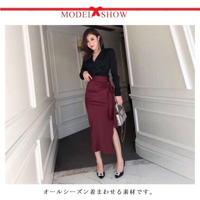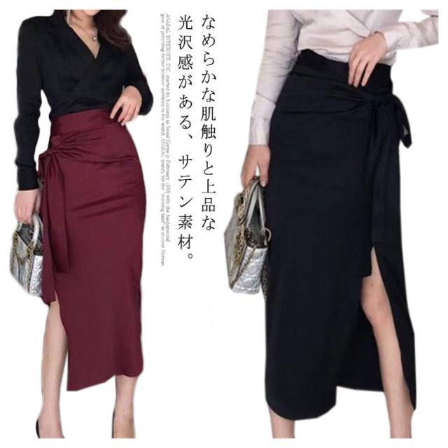 ミモレ丈 サテン 春 ロングスカート サテンスカート ウエストリボン タイトスカート ロング丈 スカート レディース フェミニン ロング 【送料無料】サテンタイトスカート