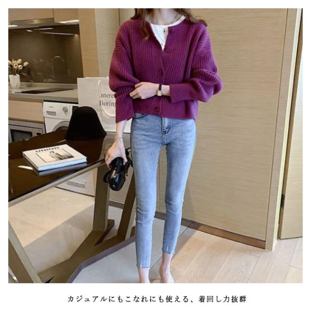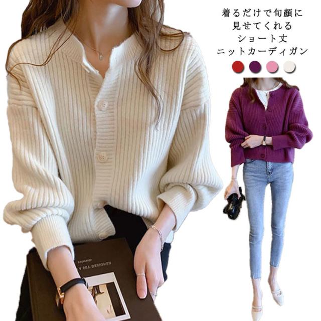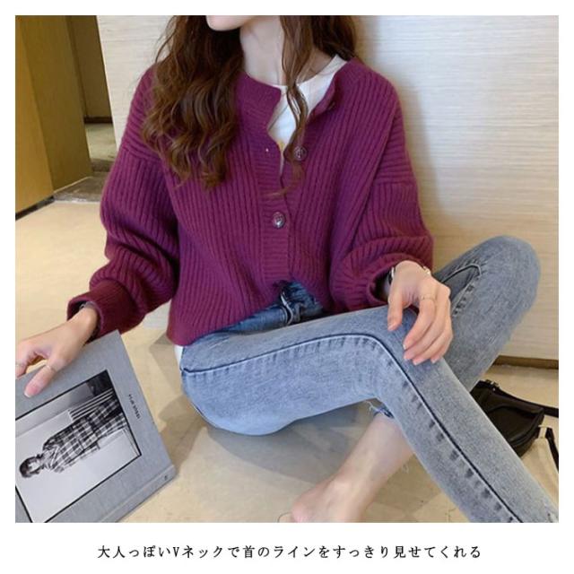 ニットカーディガン レディース ボタンカーディガン コーディガン ニットトップス コーディガン Vネック ニットセーター 長袖 春秋 春服 秋服 リブニット