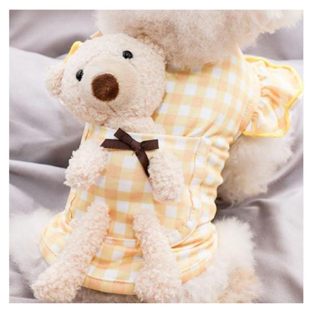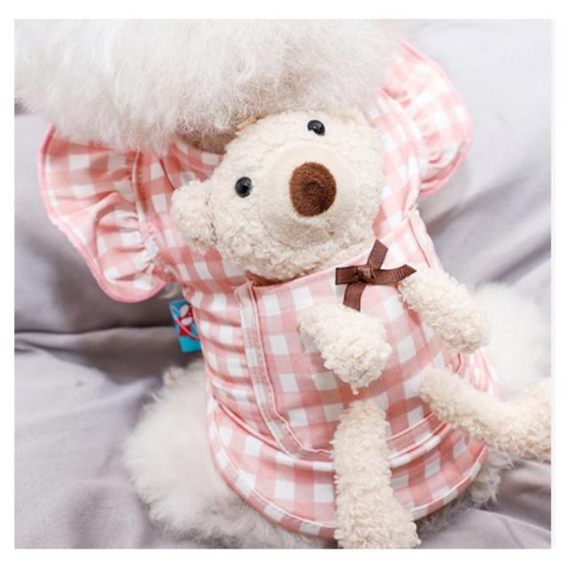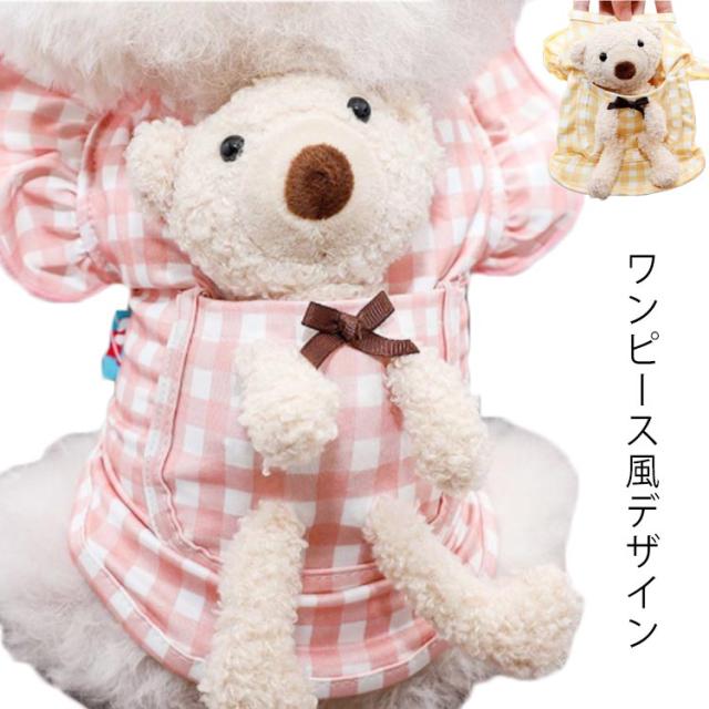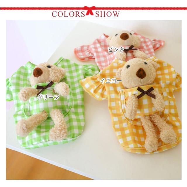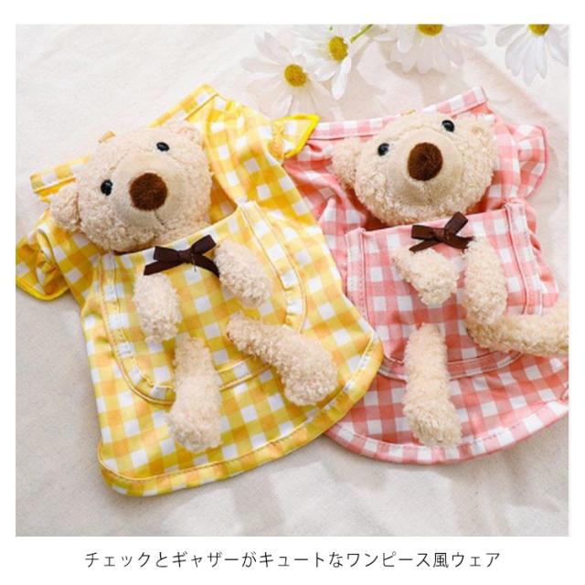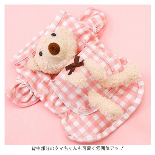 | ワンピース風デザイン チェックとギャザーがキュートなワンピース風ウェア 背中部分のクマちゃんも可愛く雰囲気アップ 小型のわんちゃんだけでなく、ねこちゃんが着てもとってもキュートにきまります! おそろいで着てもかわいい | |