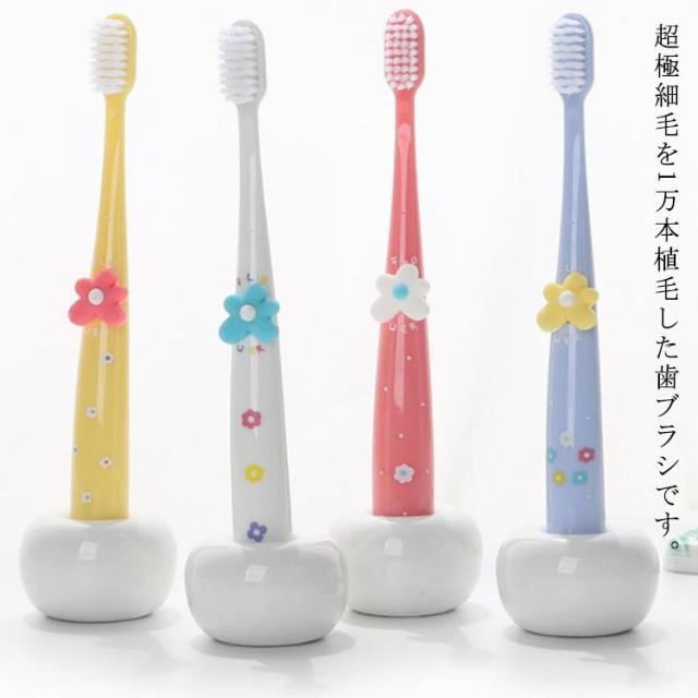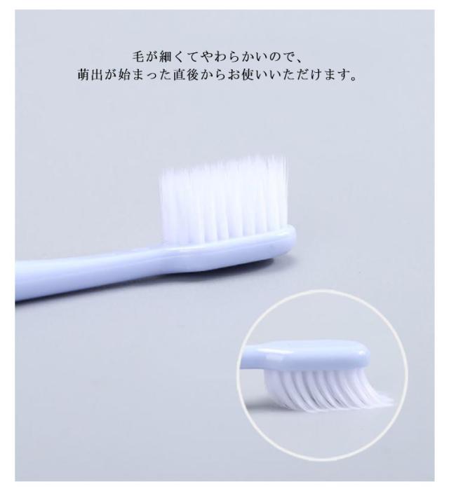 | 超極細毛を1万本植毛した歯ブラシです。 歯ブラシ嫌いや、ブラッシングを痛がるお子様でも、痛くなく歯磨きができます。 毛が細くてやわらかいので、萌出が始まった直後からお使いいただけます。 はじめて使う歯ブラシで痛い思いをしてしまうと、その後も歯ブラシを嫌がる傾向がありますので、ファーストブラシにはこれをお薦めいたします。 柔らかく刺激が少ない毛を使用しているので、触覚過敏、感覚過敏のお子様にもお薦めいたします。 | |
