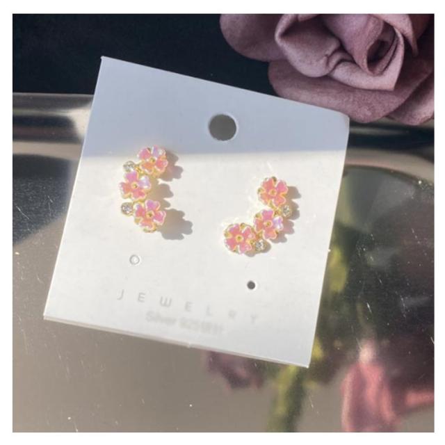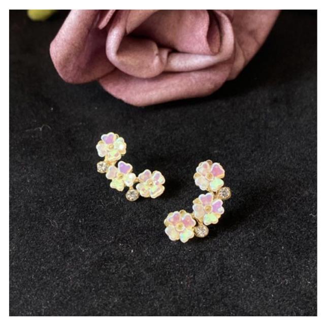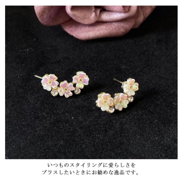 送料無料 トリプルフラワーピアス イヤリング お花 マルチカラー フラワー 925シルバー ポスト シェル風 上品 レディース 大人っぽい シンプル かわいい